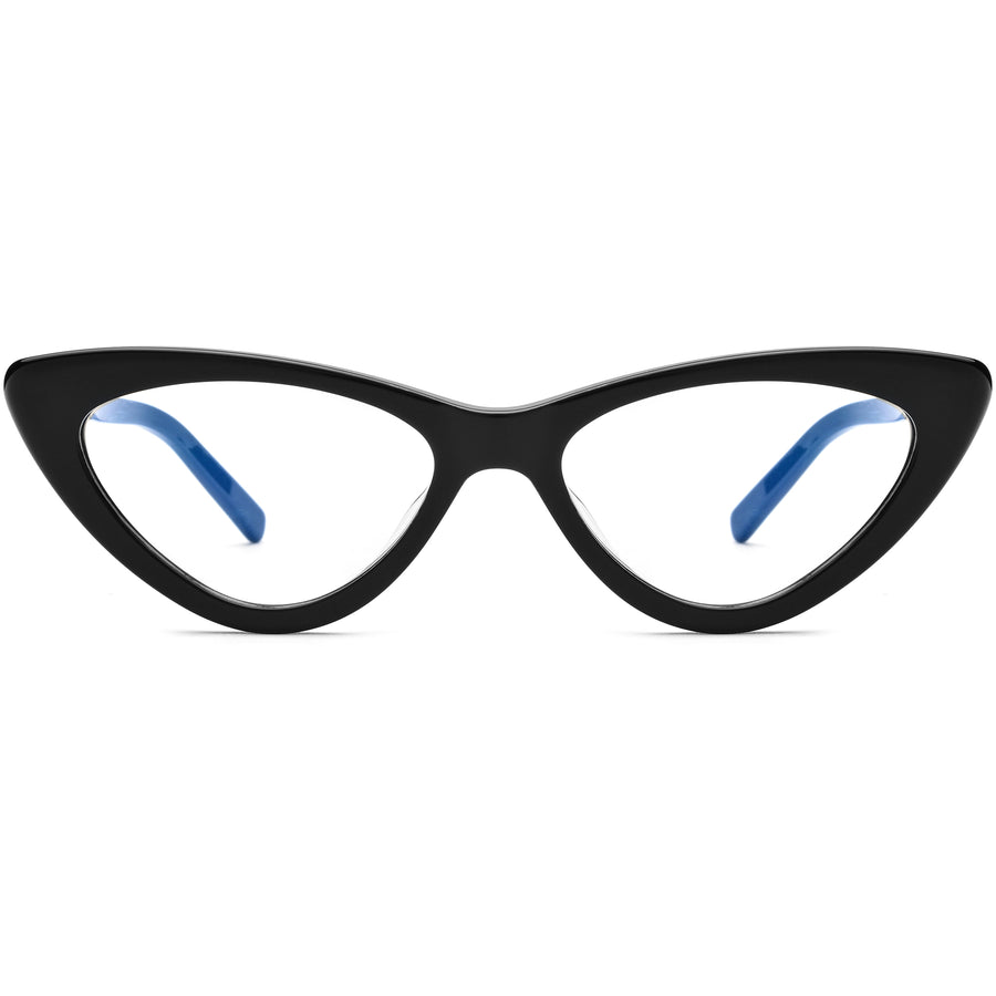 These women's cat-eye glasses feature a glossy acetate frame with angular, triangle-inspired lenses for a bold and stylish look. Combining vintage charm with modern fashion, these frames are lightweight and comfortable for all-day wear. Versatile enough to double as sunglasses with tinted lenses, they offer both style and practicality. Available in black, tortoiseshell, and red, they are perfect for enhancing oval and diamond-shaped faces, adding a touch of elegance to any look.