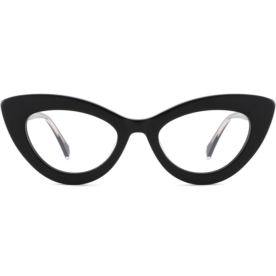 This women's narrow cat-eye frame perfectly blends retro and modern styles. Made from premium, lightweight acetate, it features a wide design and spring hinges for ultimate comfort. Add a matching fashion tint to make these chic glasses truly stand out. Available in black, pink, yellow, and green, these frames are a stylish choice for any occasion.