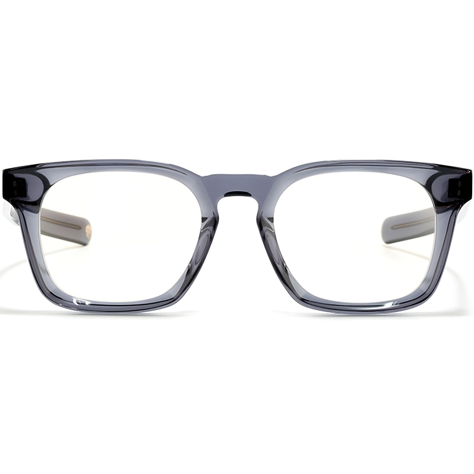 Bold and structured, these full-rim square eyeglasses are crafted from high-quality, thick acetate for long-lasting strength. The frame features library temple arms—also known as straight-back temples—which stay securely in place by applying gentle pressure against the sides of the head. Minimalist two-dot details on the temples add a refined touch to this confident, everyday design.