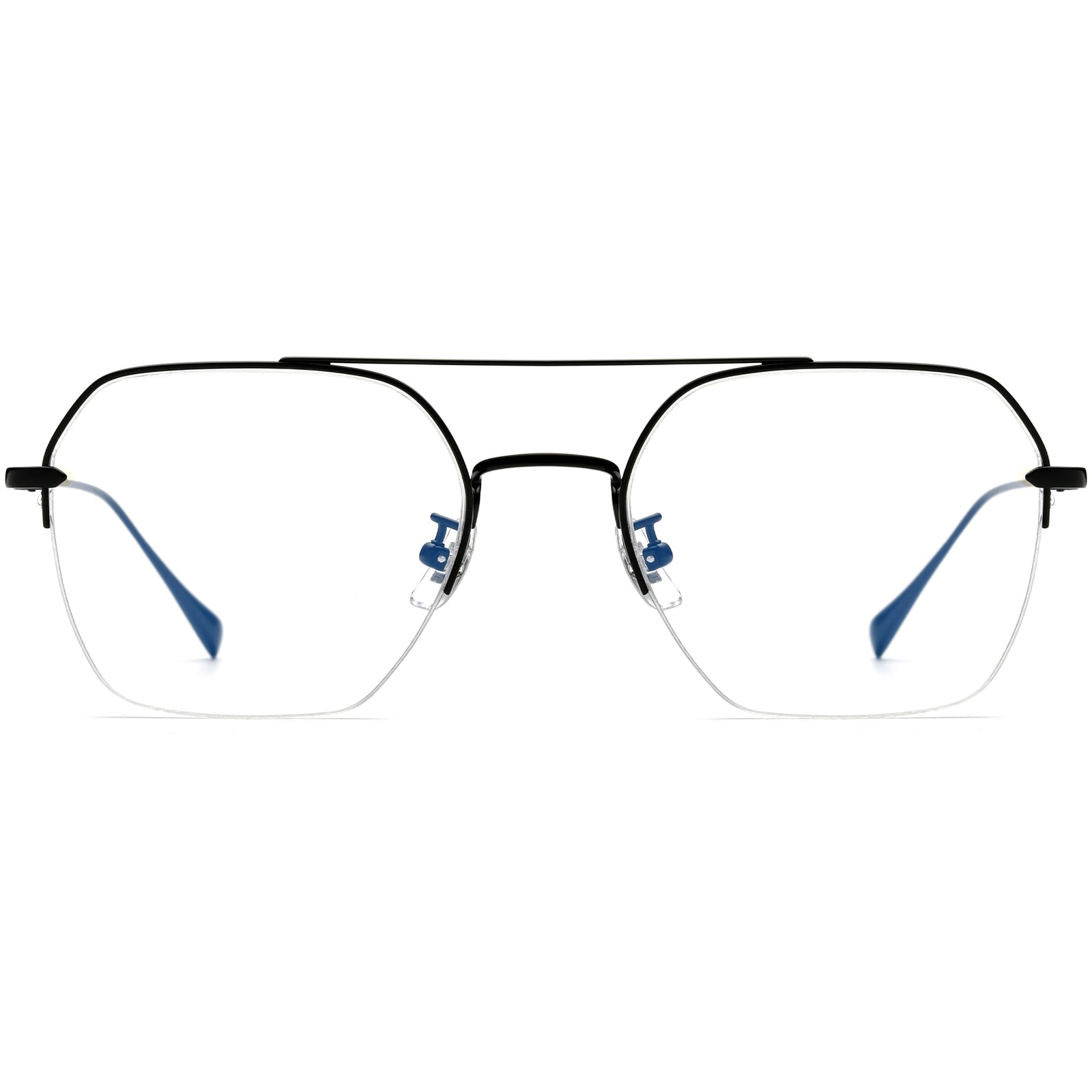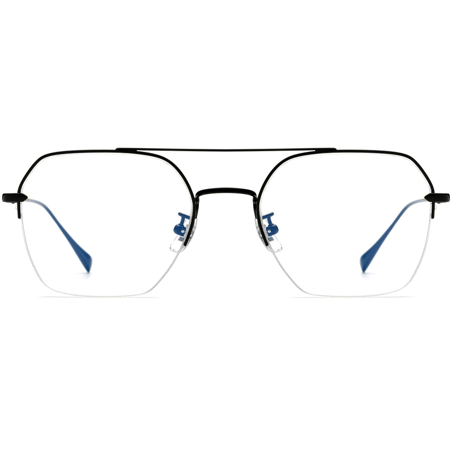 These minimalist double-bridge aviator glasses feature a classic oversized frame with a semi-rim design, blending comfort and style. The fine metal lines create a sleek look, while the flexible, resilient frame ensures a comfortable fit without pinching. The reinforced metal hinges are designed for durability and won’t loosen over time. The temple arms stay securely in place, and the soft silicone nose pads provide a comfortable, non-slip fit. Perfect for everyday wear, these glasses offer both elegance and practicality.