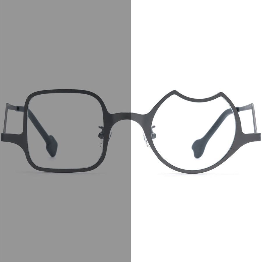 Discover our Asymmetrical One Round One Square Glasses Collection, where geometric design meets modern aesthetics. Each pair features a unique, asymmetrical shape that blends one round and one square element, adding a bold touch to your eyewear collection.