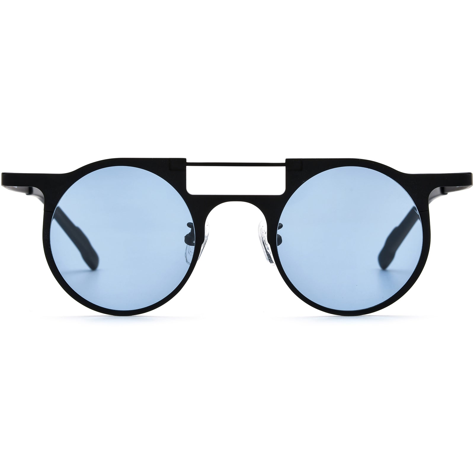 Experience bold style with these retro-inspired round sunglasses, featuring a unique double-bridge design and lightweight titanium frame for ultimate durability. The vibrant lens colors add a playful touch, perfect for making a statement. Adjustable nose pads ensure a secure, comfortable fit for all-day wear. Ideal for oval and heart-shaped faces, these sunglasses provide a versatile blend of vintage charm and modern elegance. Whether for casual outings or special events, elevate your look with these eye-catching shades.