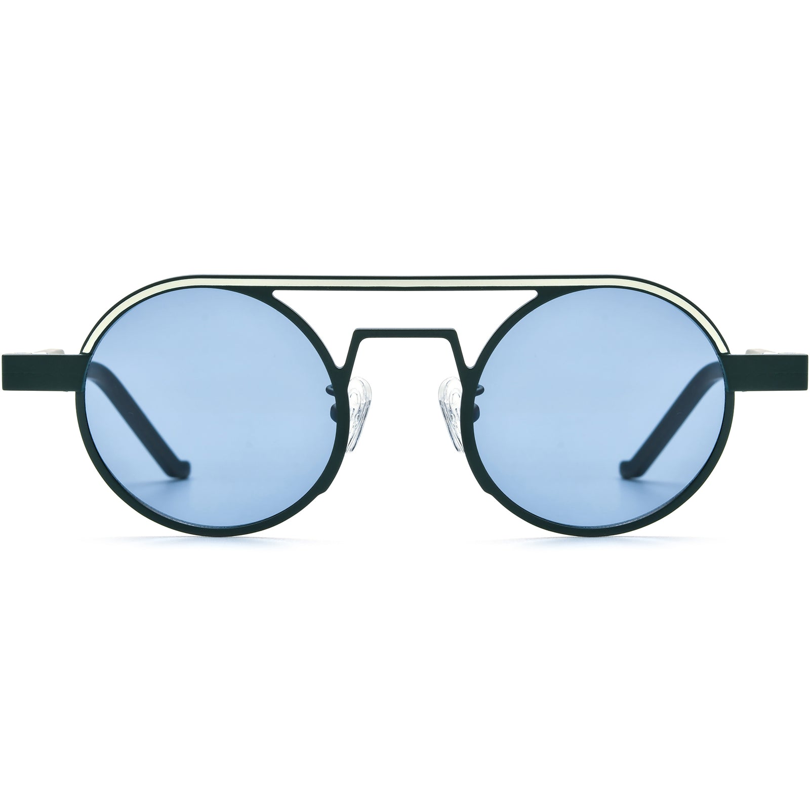 Make a bold statement with these geometric aviator sunglasses, designed with sleek round lenses and a modern double-bridge frame. Crafted from lightweight titanium with adjustable nose pads, they ensure all-day comfort and a secure fit. The vibrant color combinations and tinted lenses add a futuristic edge while providing reliable UV400 protection. Perfect for fashion-forward individuals, these sunglasses elevate any outfit, blending retro aviator vibes with a cutting-edge urban look.