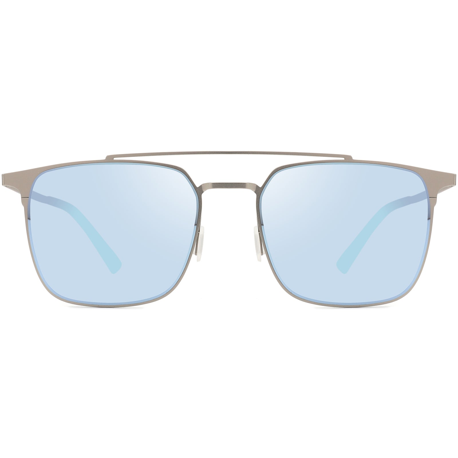 These double-bar brow aviator sunglasses feature a sleek metal frame with a bold square lens shape, offering a modern twist on a classic design. Available in two stylish combinations — a silver frame with light blue mirror finish polarized lenses, and black with gray lenses — these sunglasses provide both fashion and function. Lightweight and comfortable, they are equipped with adjustable silicone nose pads for a custom, secure fit. Perfectly suited for heart and oval face shapes, these sunglasses offer a stylish look while providing optimal sun protection with polarized lenses that reduce glare.