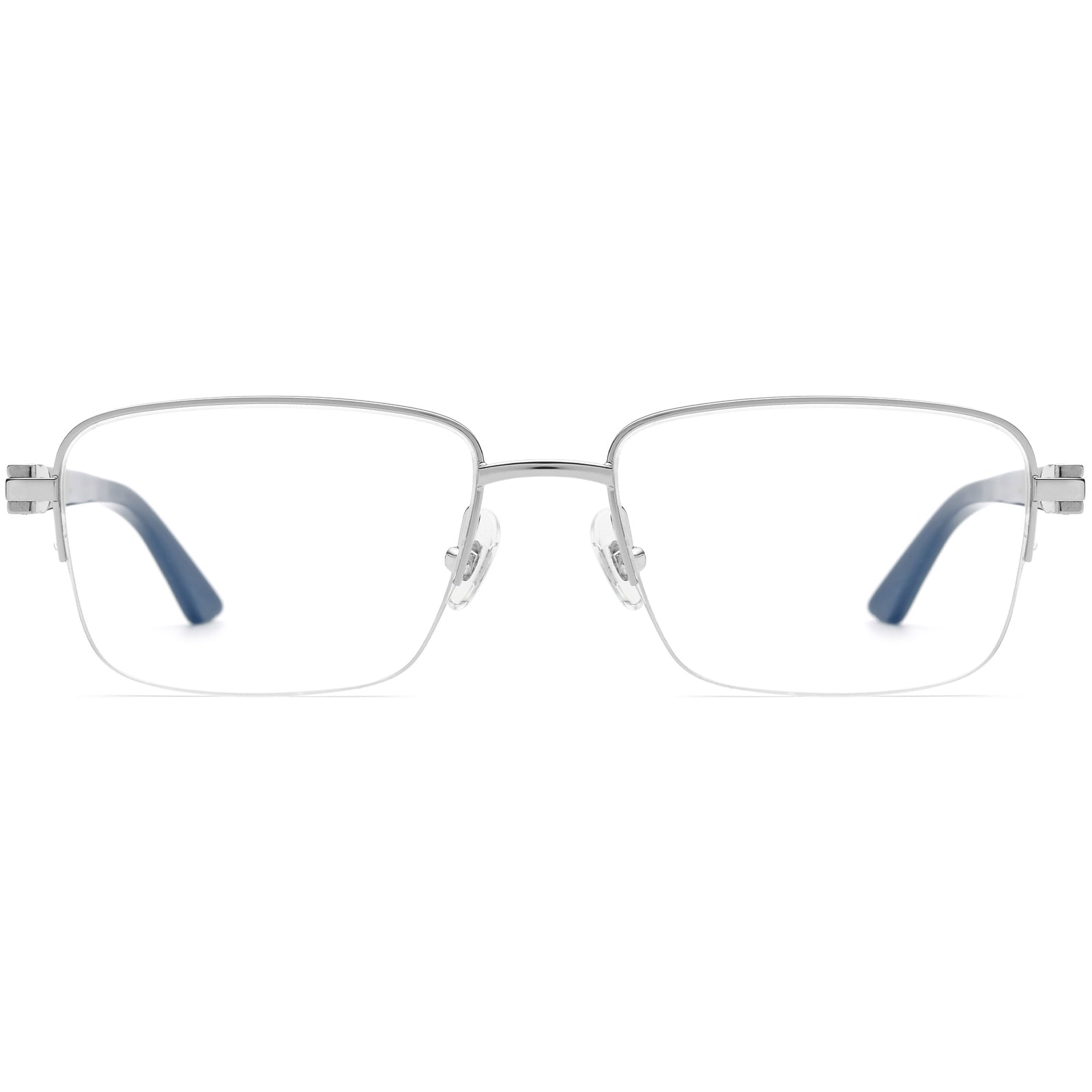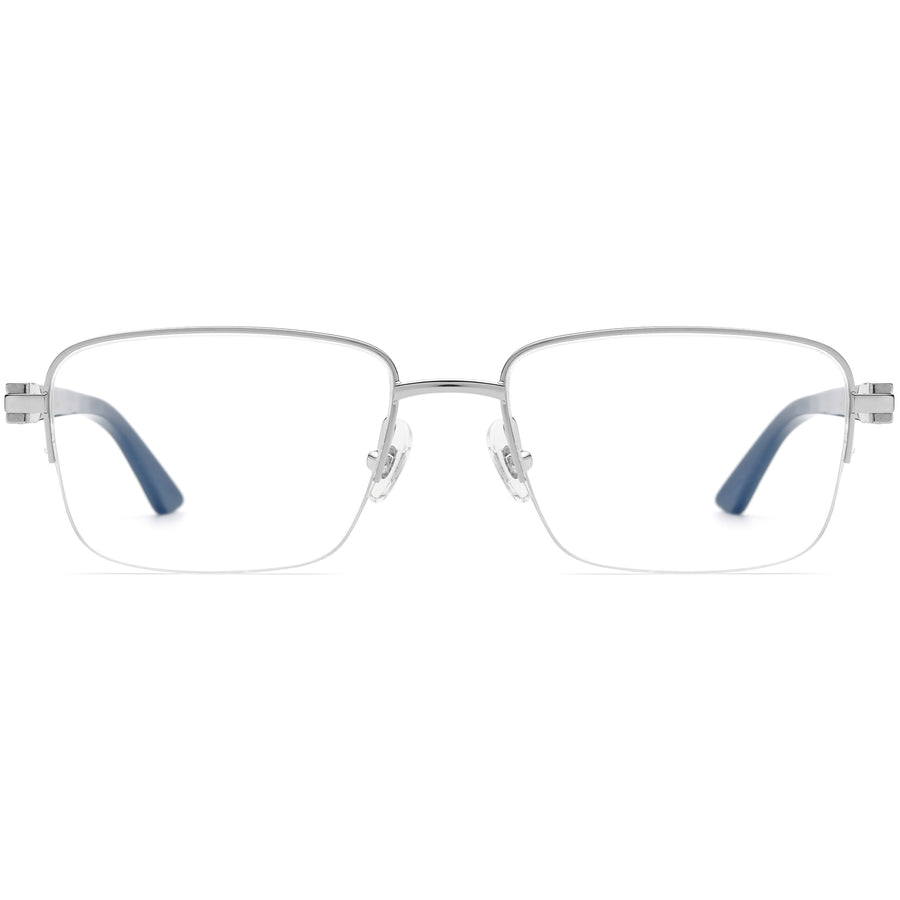 Infuse your style with these sleek half-rim rectangular eyeglasses. The metallic frame, available in modern silver-black or opulent gold-white, pairs beautifully with genuine buffalo horn temples. Featuring adjustable nose pads for tailored comfort, these glasses meld contemporary design with natural elegance. Perfect for those seeking both luxury and functionality in a single, masterful piece.
