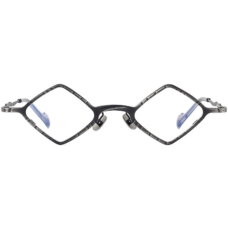 Introducing our Titanium Diamond-Shaped Full-Rim Glasses Frame, crafted for those who seek a distinct and refined style. Made from lightweight, durable titanium, this frame features a **distressed finish** with a weathered look, giving it a unique, vintage-inspired appeal. The diamond-shaped frame is designed to stand out, offering a sharp, geometric silhouette that complements small lenses for a sleek, minimalist look. The full-rim design ensures stability and comfort while providing a bold edge to your everyday style. Perfect for trendsetters looking for something distinct yet versatile, this frame blends modern craftsmanship with timeless elegance, making it an exceptional choice for anyone with a taste for unique, high-quality eyewear.