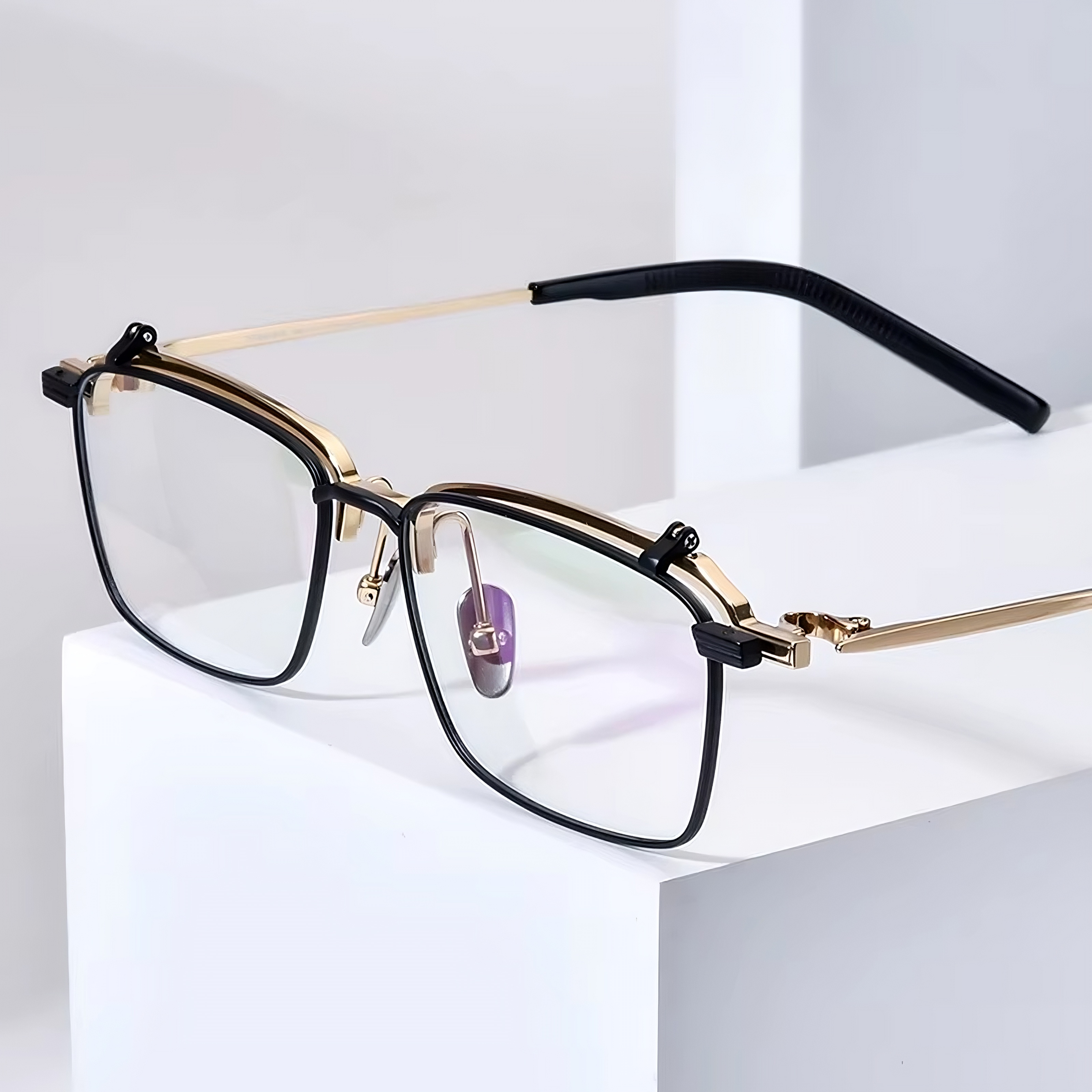 Crafted from lightweight titanium, these extra-wide eyeglass frames are designed for men with larger heads. Spring hinges ensure a pressure-free fit, while the innovative flip-up front lets you lift the lenses without removing the glasses—perfect for quick breaks from vision correction. Durable, comfortable, and highly functional, these frames combine convenience with modern style.
