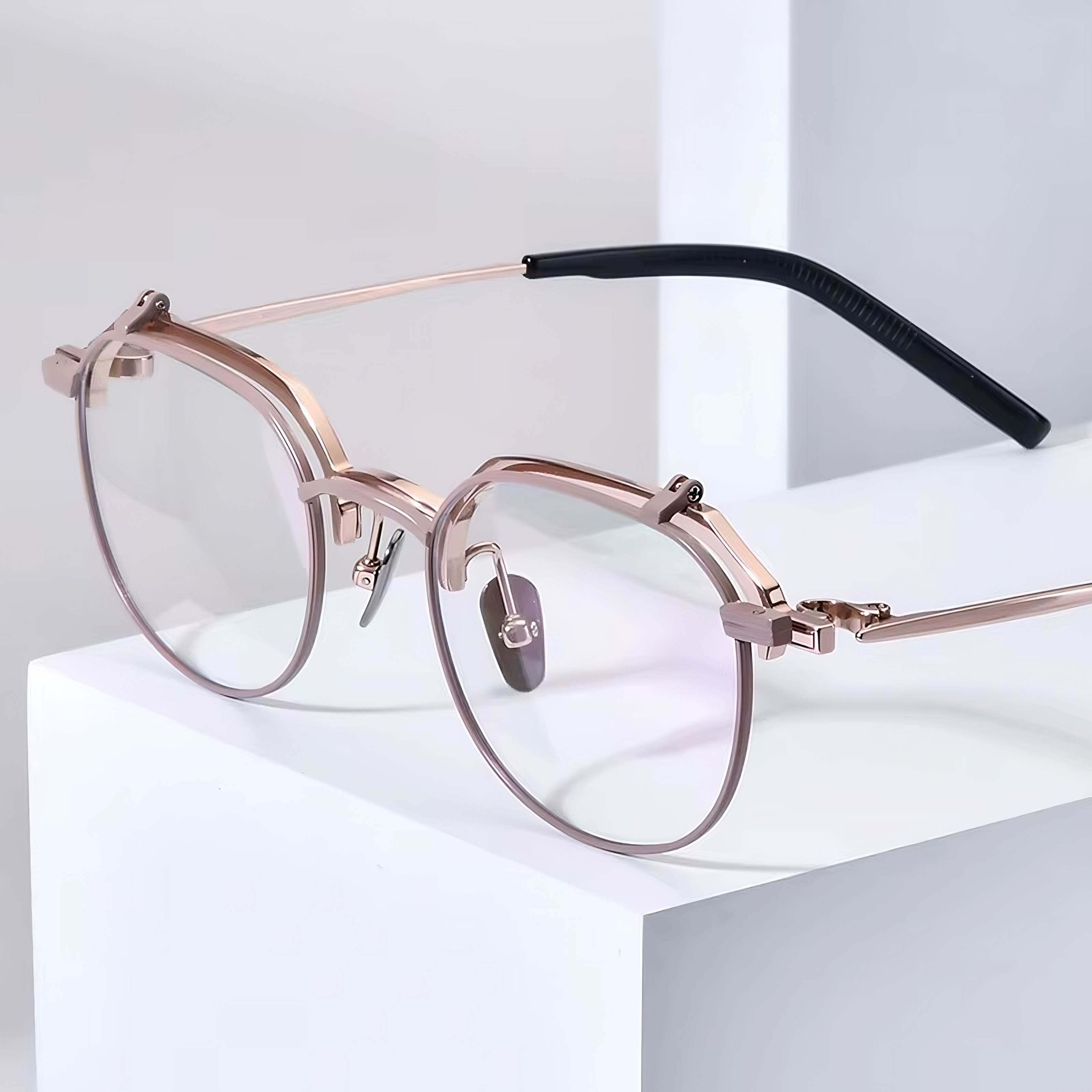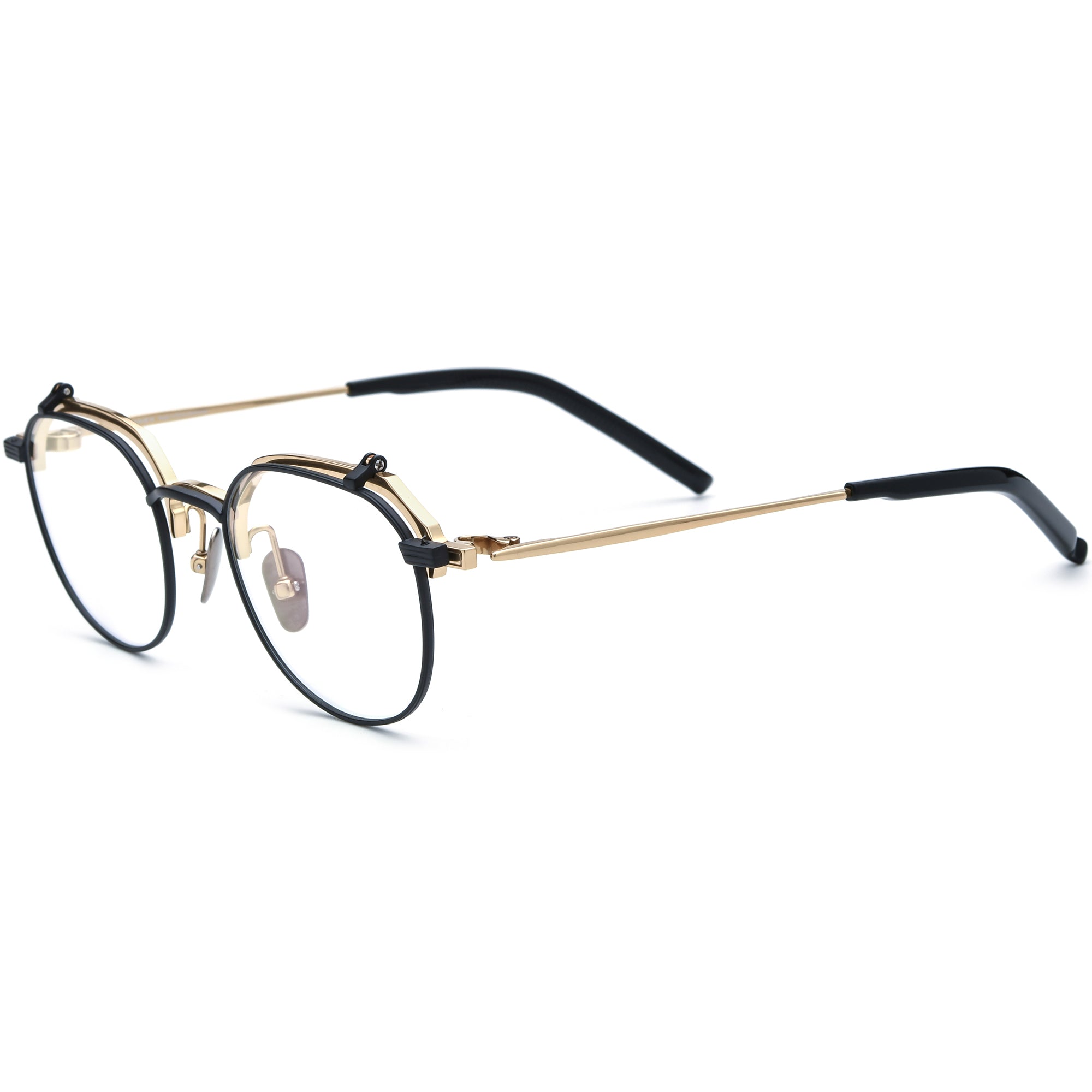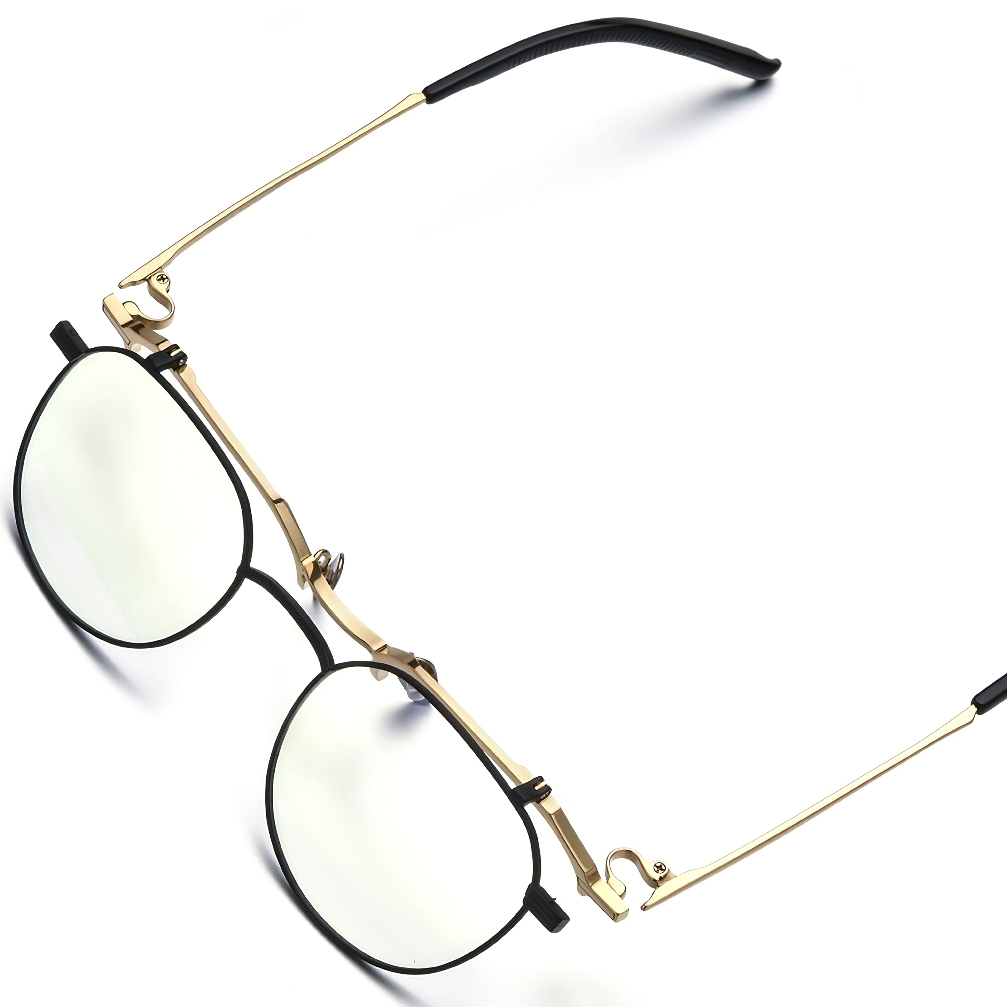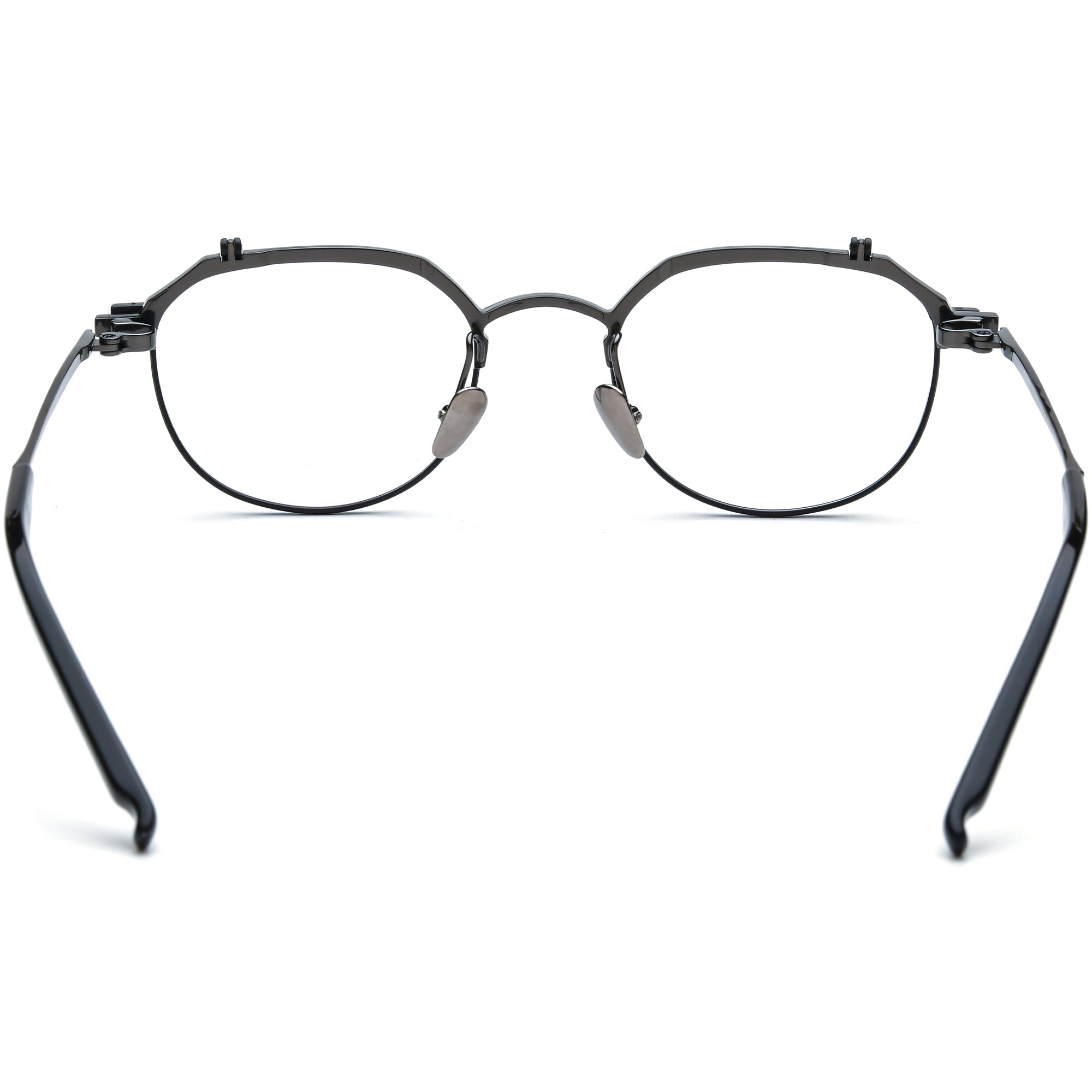 Experience premium style and durability with these pure titanium flip-up eyeglass frames. Crafted for ultra-light comfort and long-lasting strength, the design features a soft square shape with rounded corners—almost circular—for a clean, modern look that suits both men and women. The standout flip-up front lets you lift the lenses instantly for unobstructed vision, making them ideal as flip-up prescription glasses, flip-up reading glasses, or flip-up blue light glasses for work and everyday wear. Adjustable titanium nose pads provide a secure, customized fit, while the sleek temples feel pressure-free. For added comfort and stability, the temple tips feature vertical ridges that help wick away sweat and improve anti-slip grip, keeping the frames steady during long wear. Available in multiple finishes, these minimalist titanium frames blend timeless elegance with practical performance.