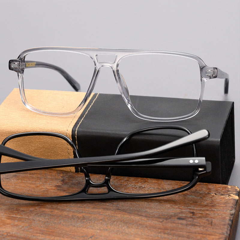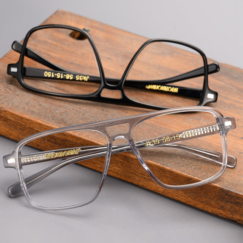 Experience timeless style and comfort with our aviator-shaped eyeglasses, designed specifically for men with larger faces and heads. Crafted from durable acetate, these wide, square frames provide a bold and confident look. Perfect for everyday wear, they combine classic aviator charm with modern sophistication, ensuring a perfect fit and unmatched durability for any occasion.
