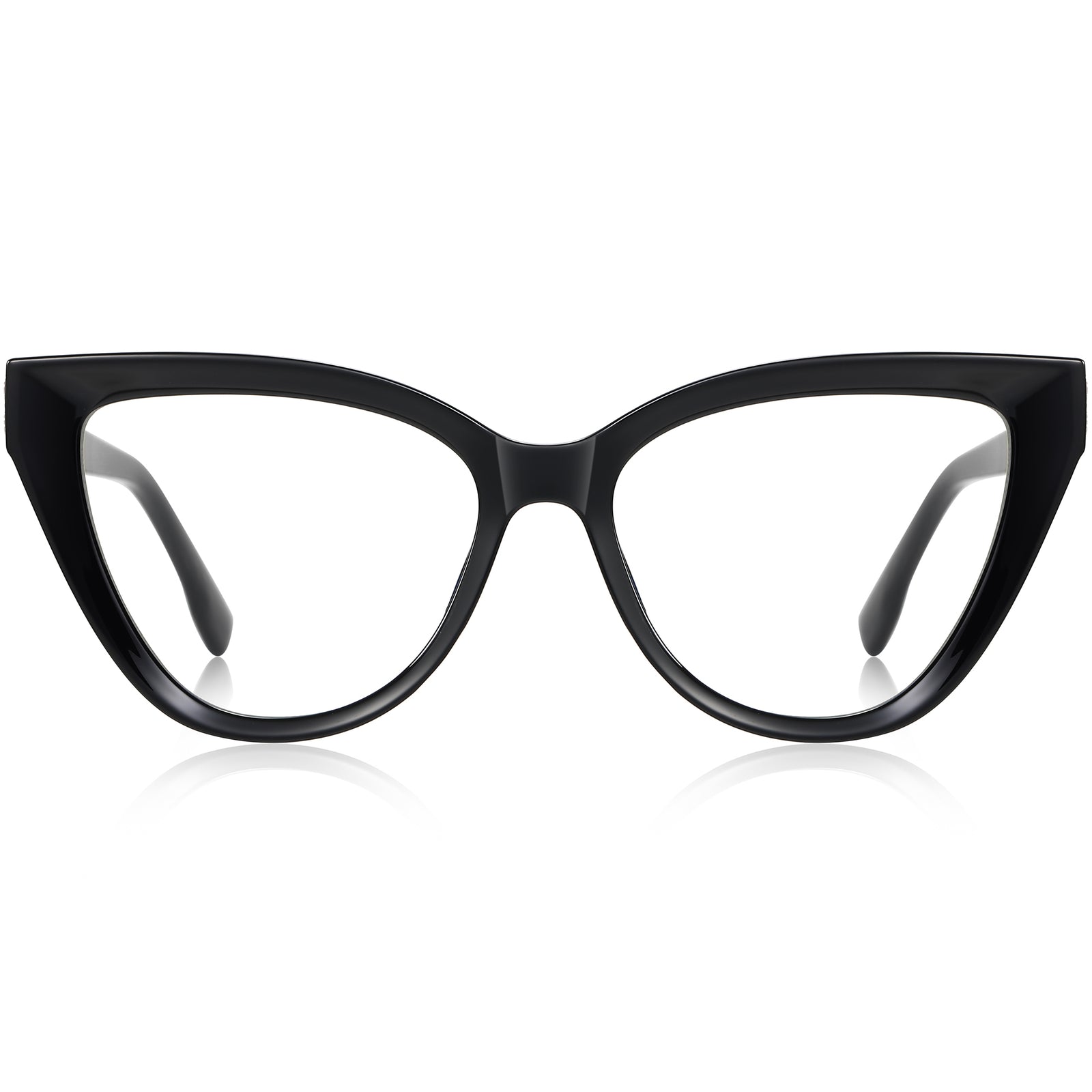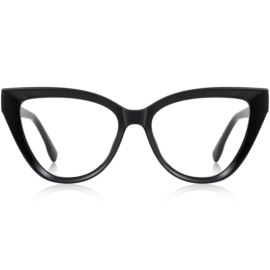 Turn heads with these sharp cat-eye eyeglasses crafted from premium and lightweight TR90. The lifted brow and tapered wings instantly slim and elevate facial features, while an integrated bridge and sculpted temples keep the fit stable and pressure-free all day. A discreet, sparkle-infused metal plaque at each spring hinge adds jewelry-like shine. Progressive-friendly and prescription ready, they accommodate blue-light, photochromic, or sun-tint lenses. Available in classic black, cobalt crystal, and nude-blush crystal. Effortless feminine style with enduring comfort and lasting durability.