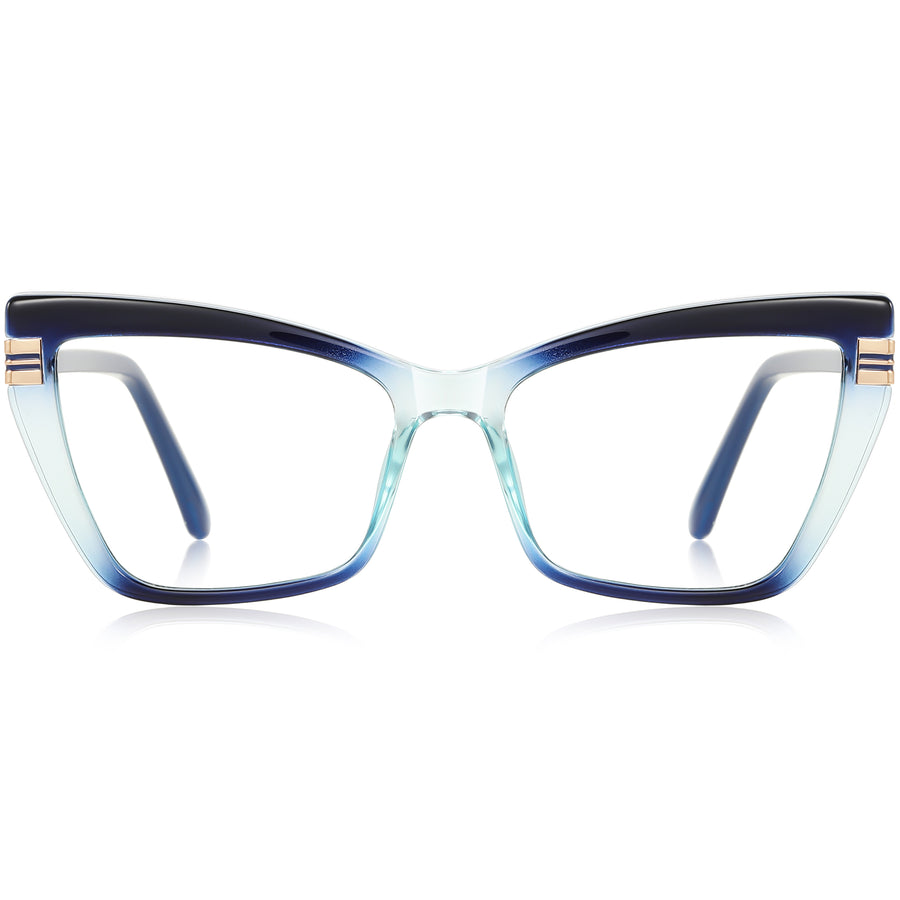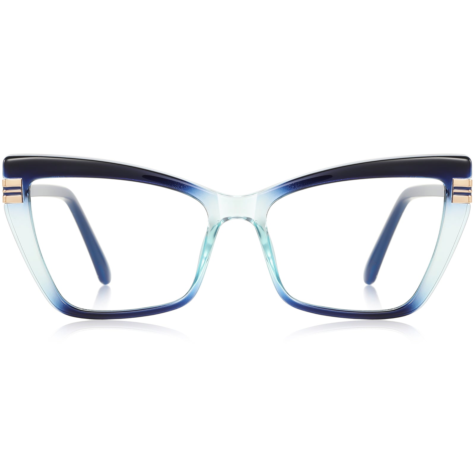 Command attention with these oversized cat-eye eyeglasses crafted from premium TR90. The sleek, lifted brow and angular lenses slim and elongate features, while a comfortable bridge and balanced temples deliver pressure-free, all-day wear. Signature triple-band spring hinges add quiet luxury. Progressive-friendly and prescription ready—choose navy-to-aqua ombré crystal, rose tortoise crystal, or clear blush. Perfect women’s glasses for office, weekends, and travel; add blue-light, photochromic, or sun-tint lenses for stylish protection and lasting durability. Feather-light, scratch-resistant performance included too.