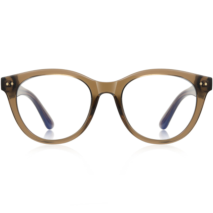 Meet our soft-round eyeglasses crafted from ultra-light TR90 for everyday durability and comfort. The gently lifted brow and slim rims flatter oval, round, and heart faces, while an integrated bridge and sculpted temple tips ensure a secure, pressure-free fit. Signature ribbed spring hinge accents add subtle polish. Progressive-friendly and prescription-ready, they’re ideal for office, study, and weekend wear. Available in tea-brown crystal, denim-blue crystal, and smoke-grey crystal. Add blue-light, photochromic, or sun-tint lenses for personalized protection—comfort, clarity, style.