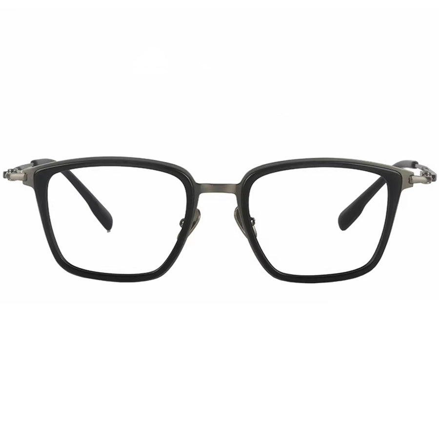 Built for bigger fits, these full-rim square glasses combine a bold acetate front with featherlight titanium temples for all-day comfort. The sleek bridge helps reduce pressure, while adjustable titanium nose pads keep the frame stable without pinching. Spring hinges add flexibility for wider heads and easy on/off. Clean browline detailing and a sharp square lens shape bring modern confidence to work, driving, and screen time—durable, lightweight, and polished from every angle. Ideal for round and oval faces seeking room.