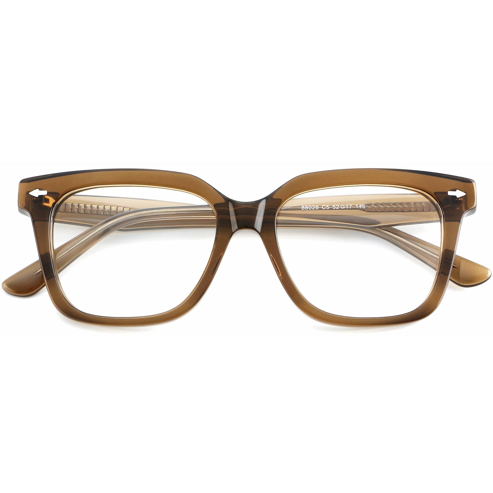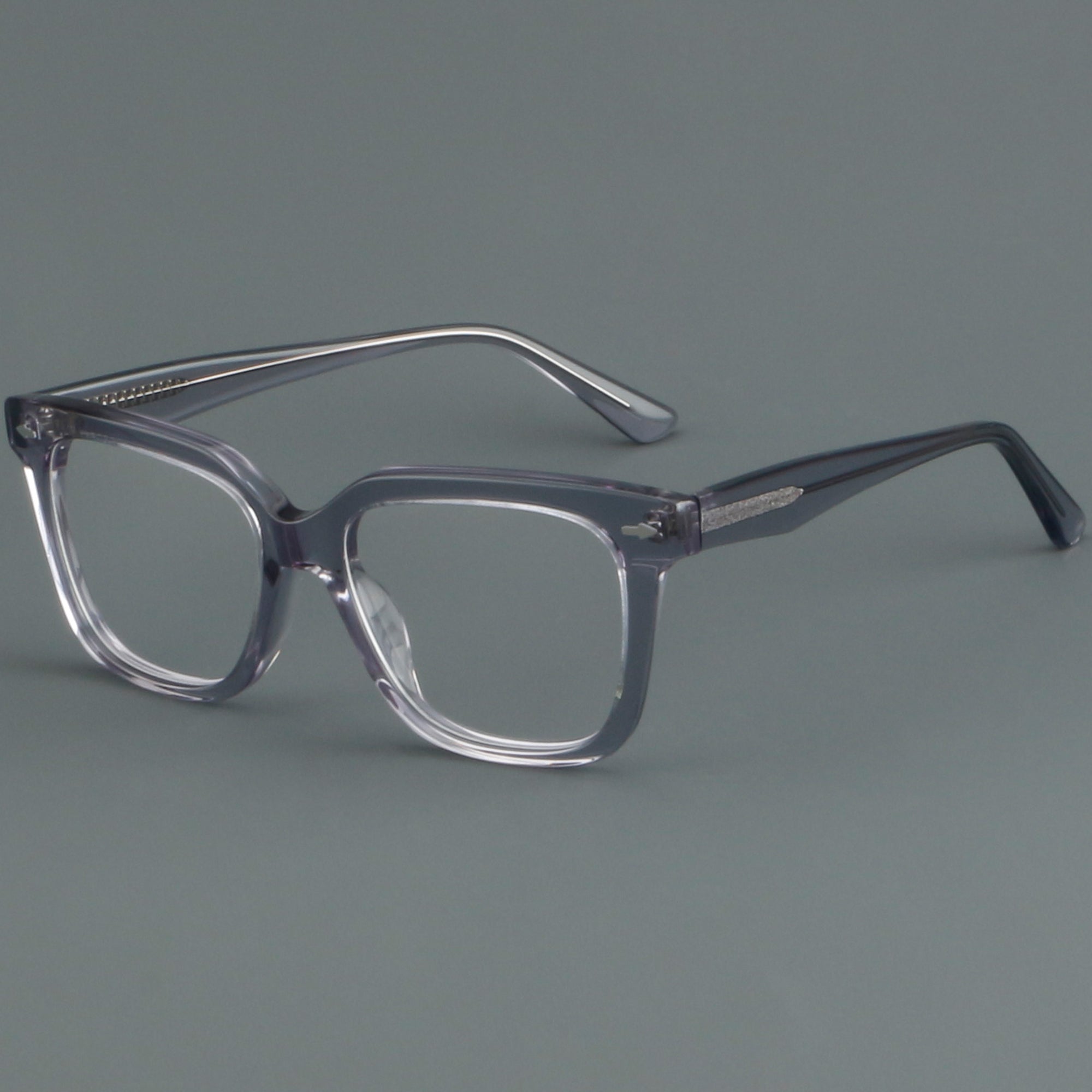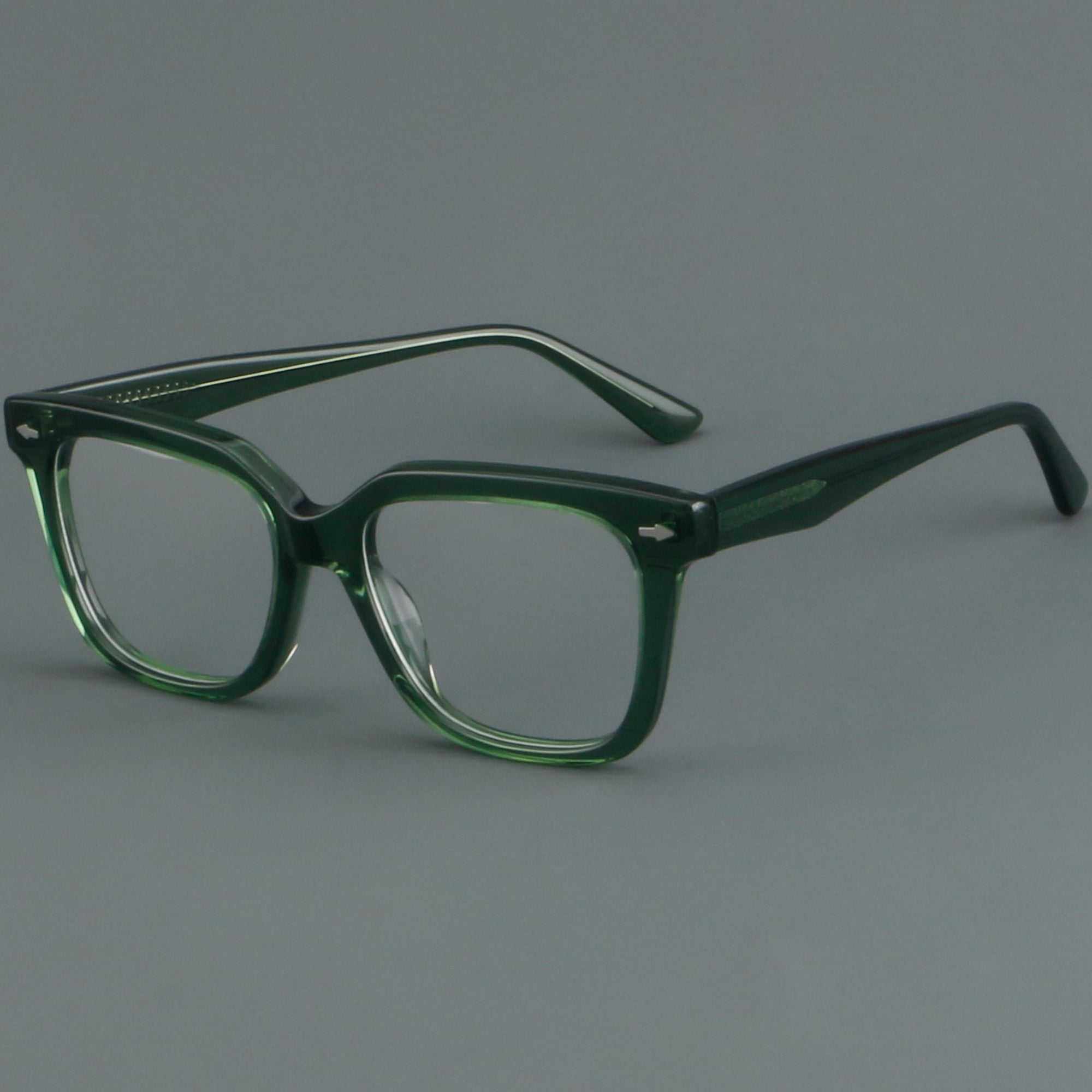 Medium full-rim square acetate glasses for men and women. The thick, glossy frame features integrated acetate nose pads for day-long comfort and a sturdy riveted multi-barrel hinge for smooth, long-lasting use. Classic, softly squared lines suit most face shapes, while core-wired temples add stability. Ideal as prescription or blue-light glasses, this lightweight, durable acetate style delivers timeless fashion with modern comfort for everyday use.