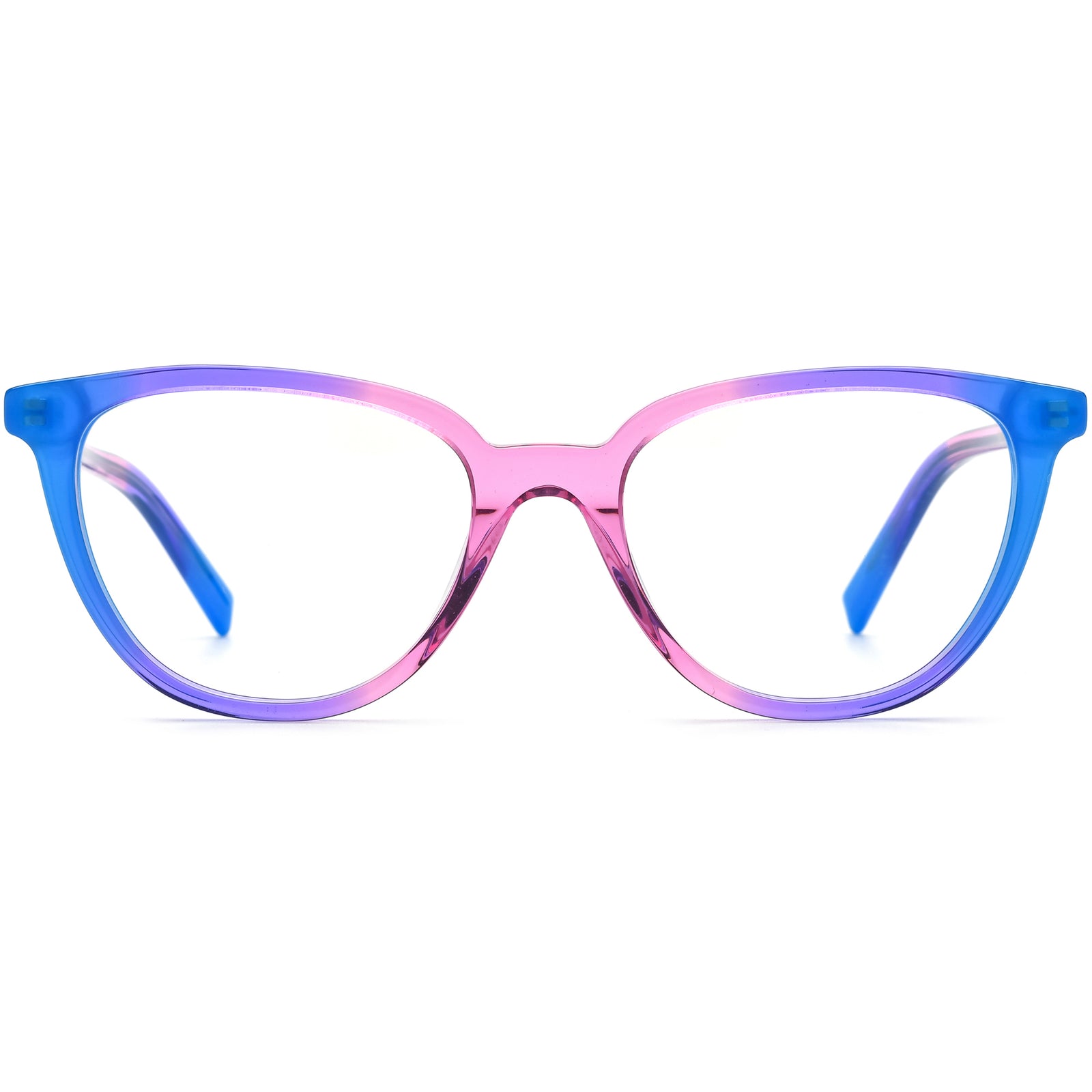 These chic cat-eye frames are crafted from premium acetate, ensuring lightweight durability and long-lasting comfort. The bold, upswept design adds a touch of elegance and retro charm, making them perfect for fashion-forward individuals. Ideal for oval and heart-shaped faces, these frames featuring unique color gradient highlight cheekbones and add sophistication to any look. Whether for daily wear or special occasions, their vibrant colors and sleek contours offer a seamless blend of style and functionality.