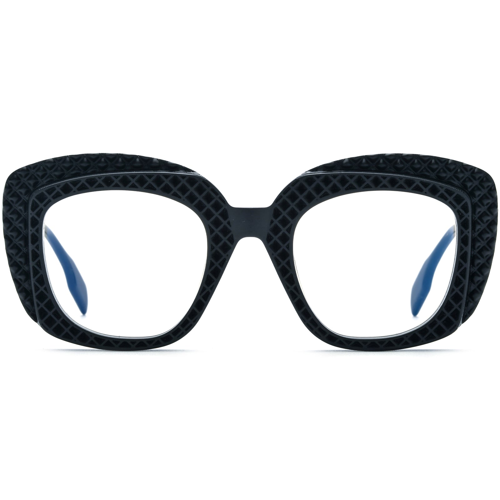 Discover unparalleled dimension with our cat-eye eyeglasses, designed exclusively for women. Made from rich acetate, the thick frames feature a dual-layered design adorned with a meticulous interplay of rut holes and bumps. This intricate detailing not only accentuates their three-dimensional allure but also redefines the classic silhouette. A captivating blend of depth and style for the discerning fashionista.