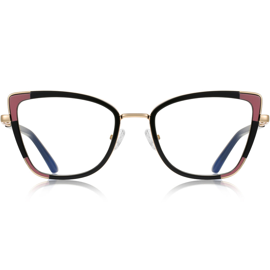 Retro-spirited yet refreshingly current, this angular cat-eye is carved from translucent, color-blocked TR90 plastic and anchored by a sleek stainless bridge. Faceted metal temples feature ridged insets for tactile flair and taper to cushy acetate tips, while hidden spring hinges and adjustable silicone pads promise all-day, pinch-free comfort. The upswept brow flatters oval, heart and round faces, making these frames a stylish platform for single-vision, progressive or blue-light lenses from boardroom briefings to brunch.