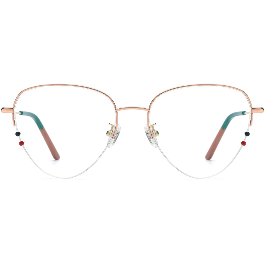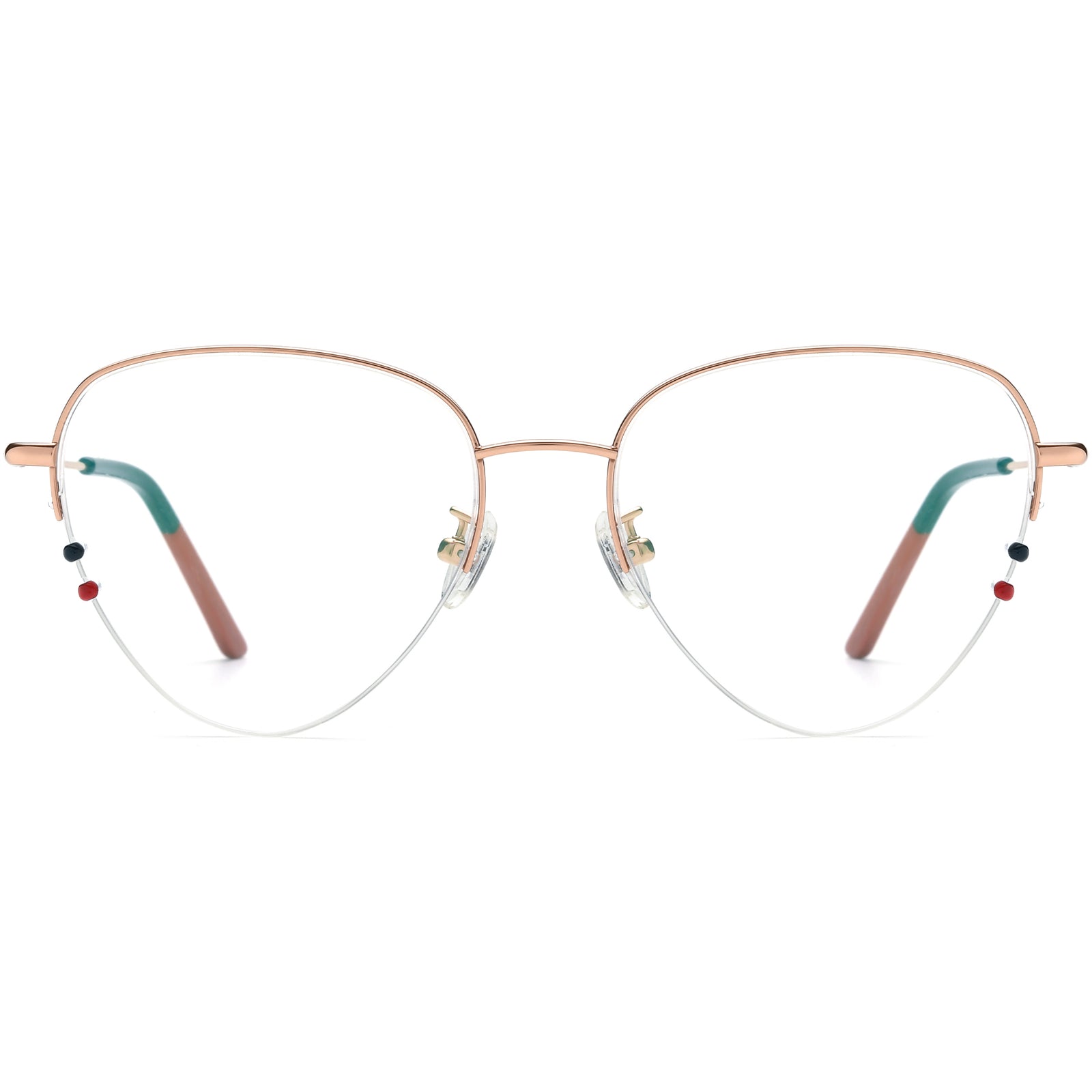 These women’s geometric glasses feature a lightweight and durable half-rim titanium frame, combining comfort with a modern aesthetic. Delicate colorful beading embellishes the lower rim wire, beautifully echoing the temple tips and color accents at the hinge for a harmonious design. Adjustable nose pads provide a secure and customized fit, ensuring all-day comfort. Available in elegant rose gold and sleek silver, these glasses offer a perfect blend of sophistication and functionality, making them ideal for everyday wear.