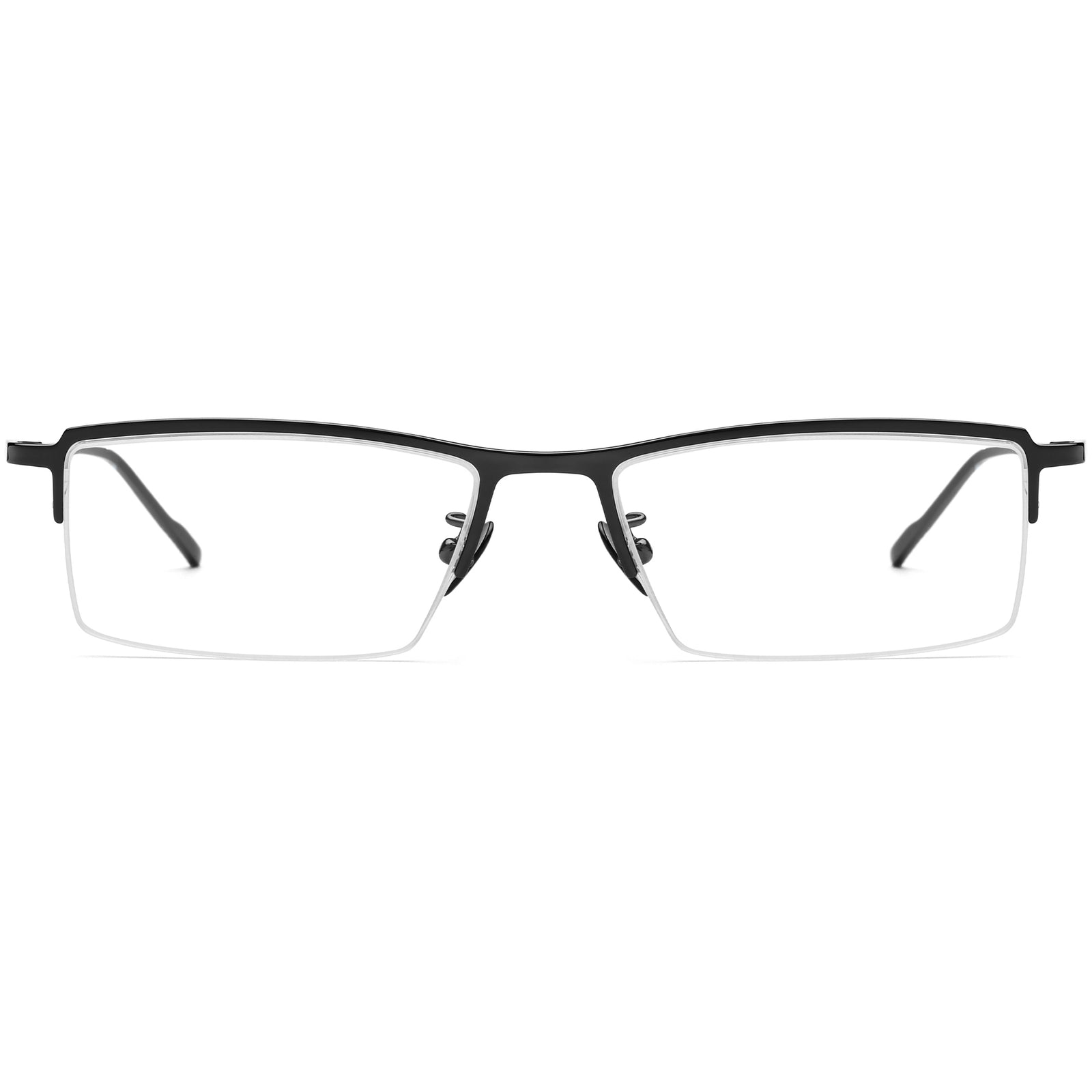 Sleek and minimalist, these semi-rimless rectangular glasses blend lightweight design with modern sophistication. The durable titanium frame is both stylish and practical, offering a professional look suitable for daily wear. Adjustable titanium nose pads ensure a customized fit for maximum comfort throughout the day. Available in versatile color options like classic black or elegant gold, these half-rim frames provide a subtle yet refined style. Perfect for those seeking understated elegance with functional appeal.