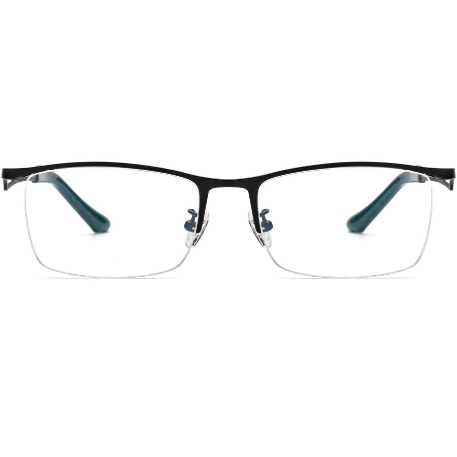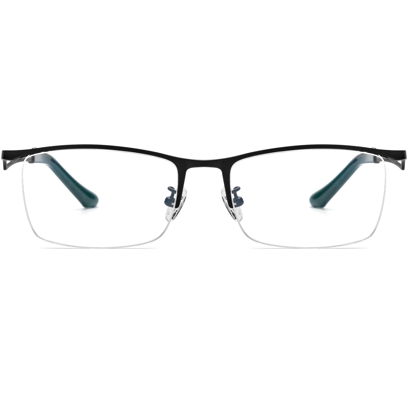 Discover modern elegance with these large rectangular glasses, featuring a lightweight and durable titanium construction. The half-rim design offers a sleek, modern look while maintaining a classic style. Equipped with adjustable nose pads, these glasses provide enhanced comfort and a snug fit, making them ideal for everyday use. Cut-out details at the temple arms enhance the style, while specially designed temple tips help prevent slippage. Perfect for softening round face shapes, these glasses come in timeless colors—black, gray, silver, and blue—for versatile styling.