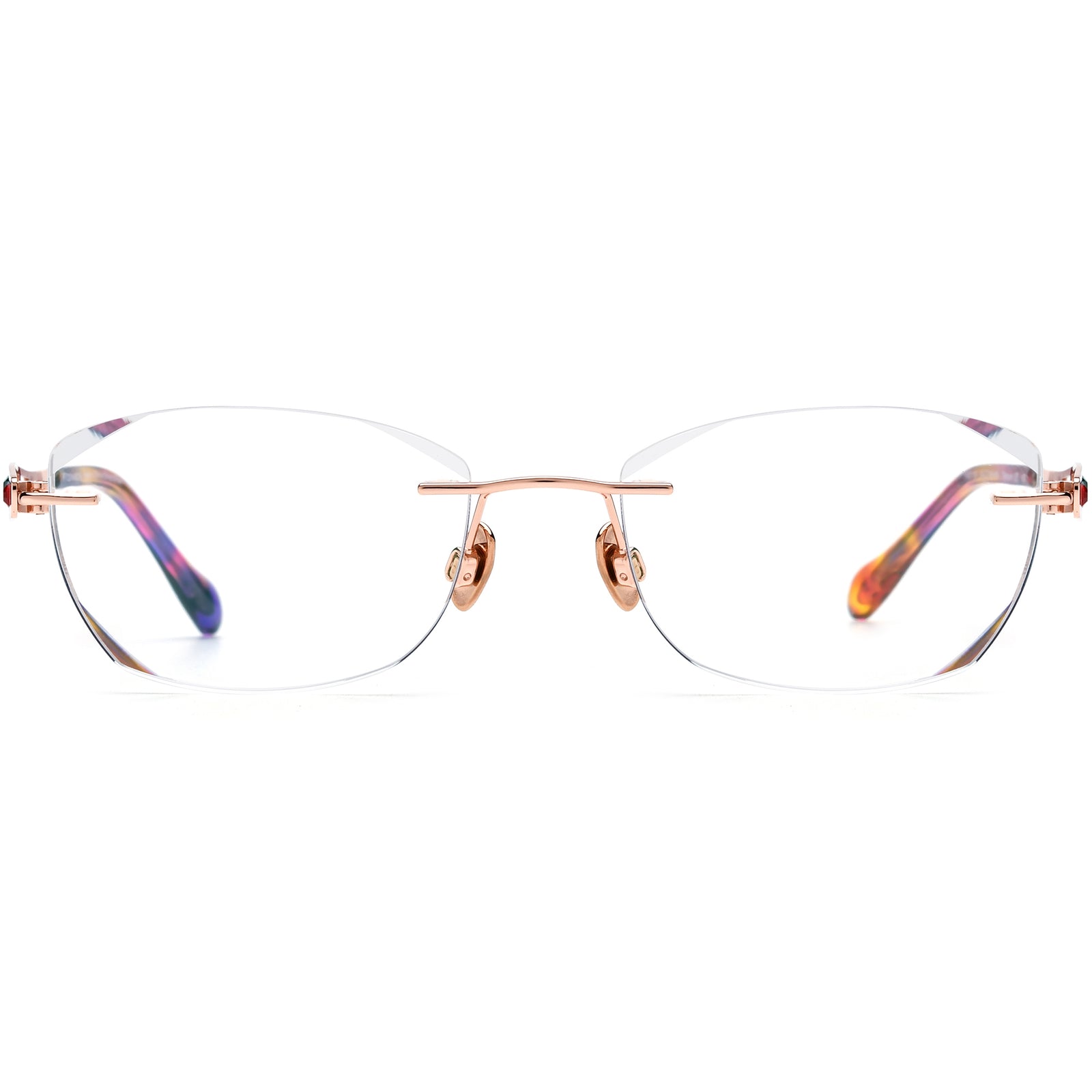 Elevate your everyday look with these elegant women’s rectangle rimless glasses, designed for modern sophistication. The lightweight titanium frame features a chic rose-gold finish with gemstone accents on the temples, adding a touch of sparkle and femininity. Adjustable titanium nose pads ensure all-day comfort, while the slim temples with colorful tips provide a stylish contrast. Perfect for prescription or fashion lenses, these glasses flatter oval, heart, and round face shapes, blending durability with refined glamour.