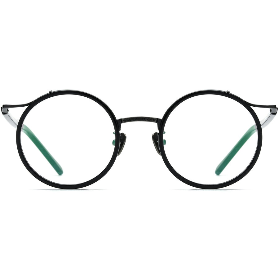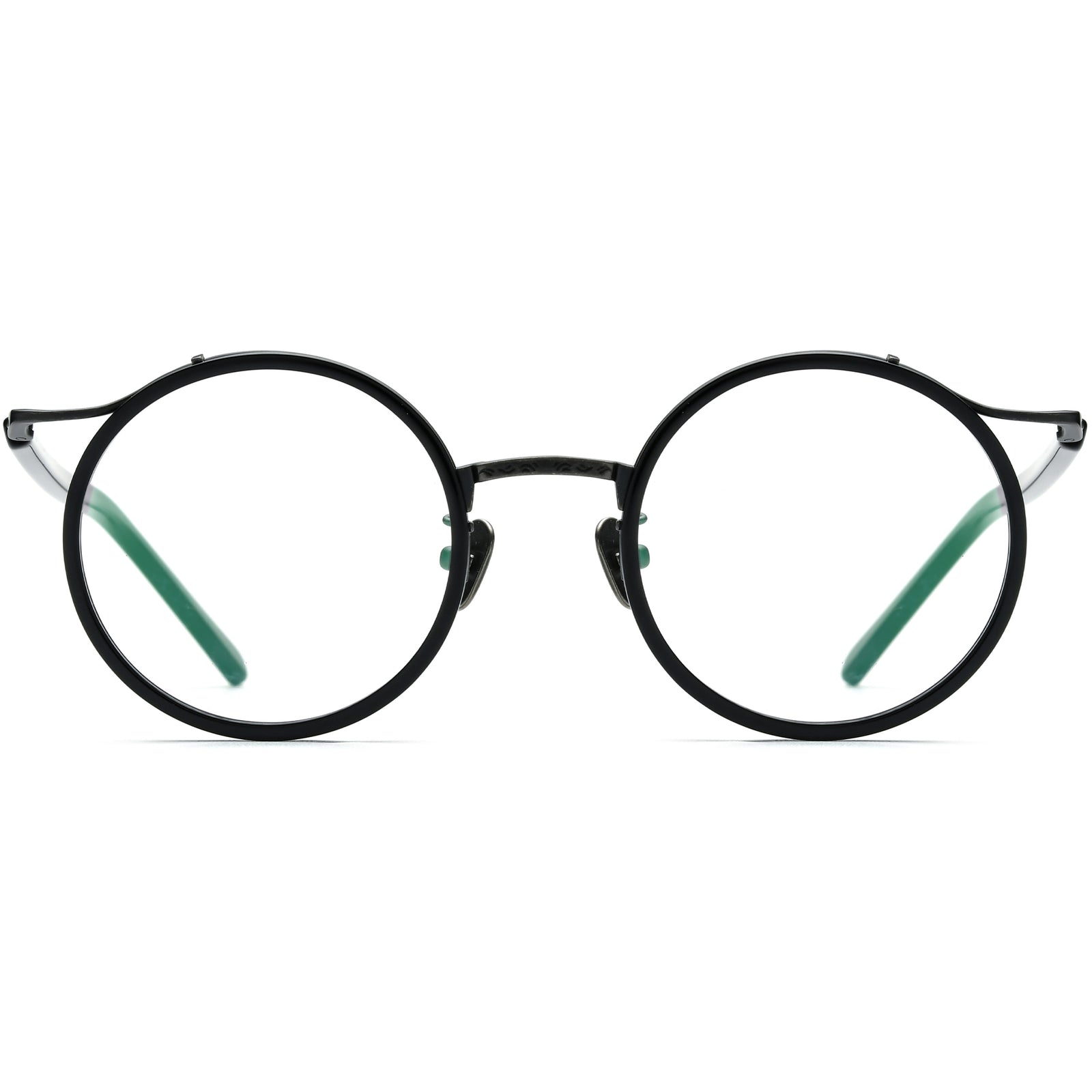 These artistic vintage round glasses are designed for both men and women, crafted from a mix of lightweight pure titanium and high-quality acetate for a perfect blend of style and durability. The delicately engraved nose bridge adds a unique, decorative touch, while the ergonomic nose pads reduce pressure on the nose for all-day comfort. Featuring smooth acetate temple arms and refined hinges, these glasses offer a sophisticated, comfortable fit, making them ideal for both daily wear and special occasions.