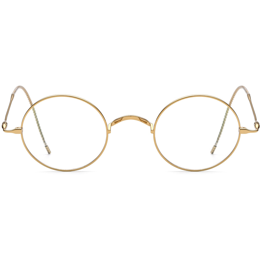 Step back in style with these vintage-inspired round titanium frames, designed with comfort cable temple arms that provide a secure, adjustable fit. The springy coiled temples—encased in soft silicone—gently hug the ear for superior comfort, ideal for active lifestyles or high-prescription lenses. A distinctive saddle bridge without nose pads ensures pressure-free wear, while twisted temple tips and precision-crafted hinges highlight artisanal detail. Lightweight yet strong, these frames blend retro charm with modern functionality for everyday elegance.