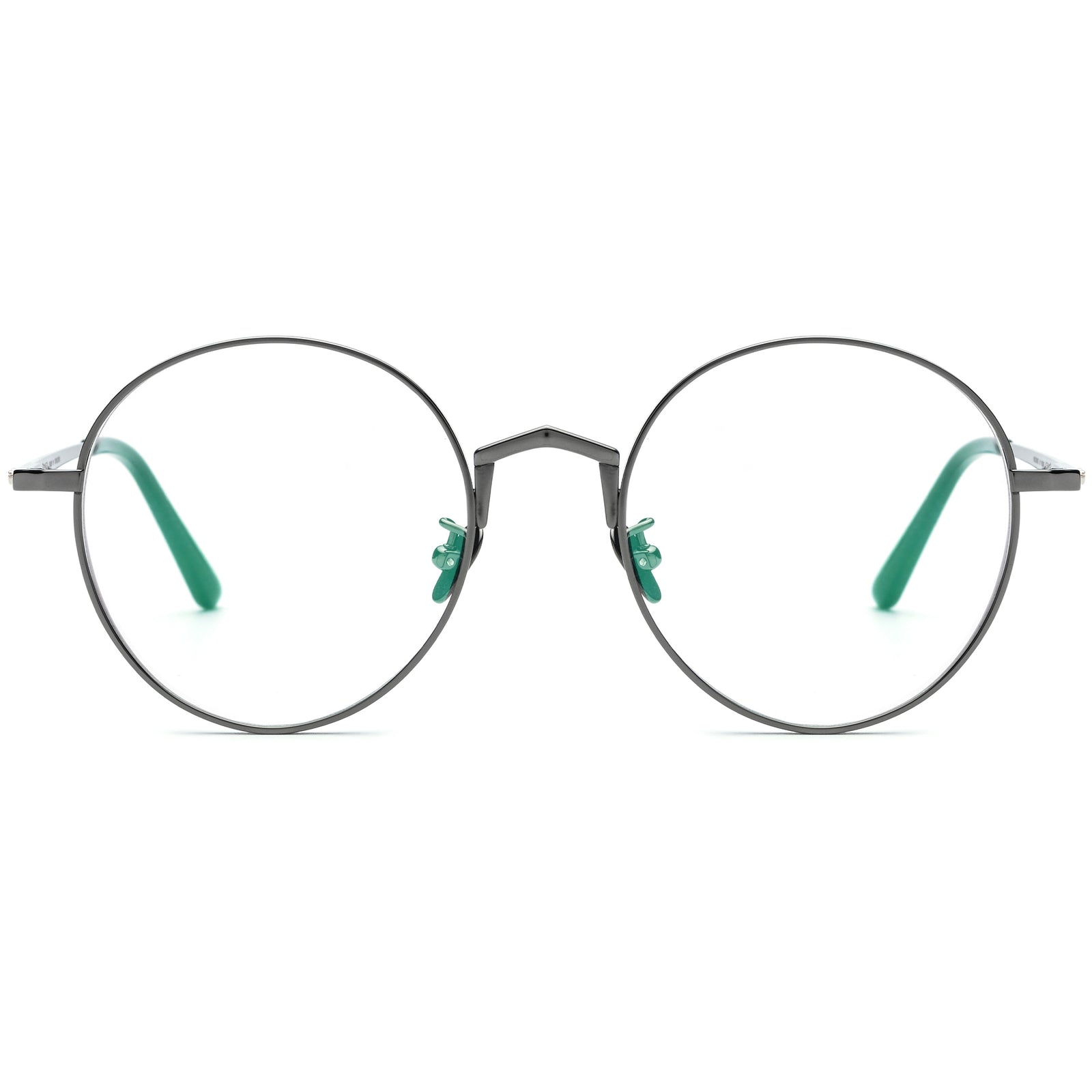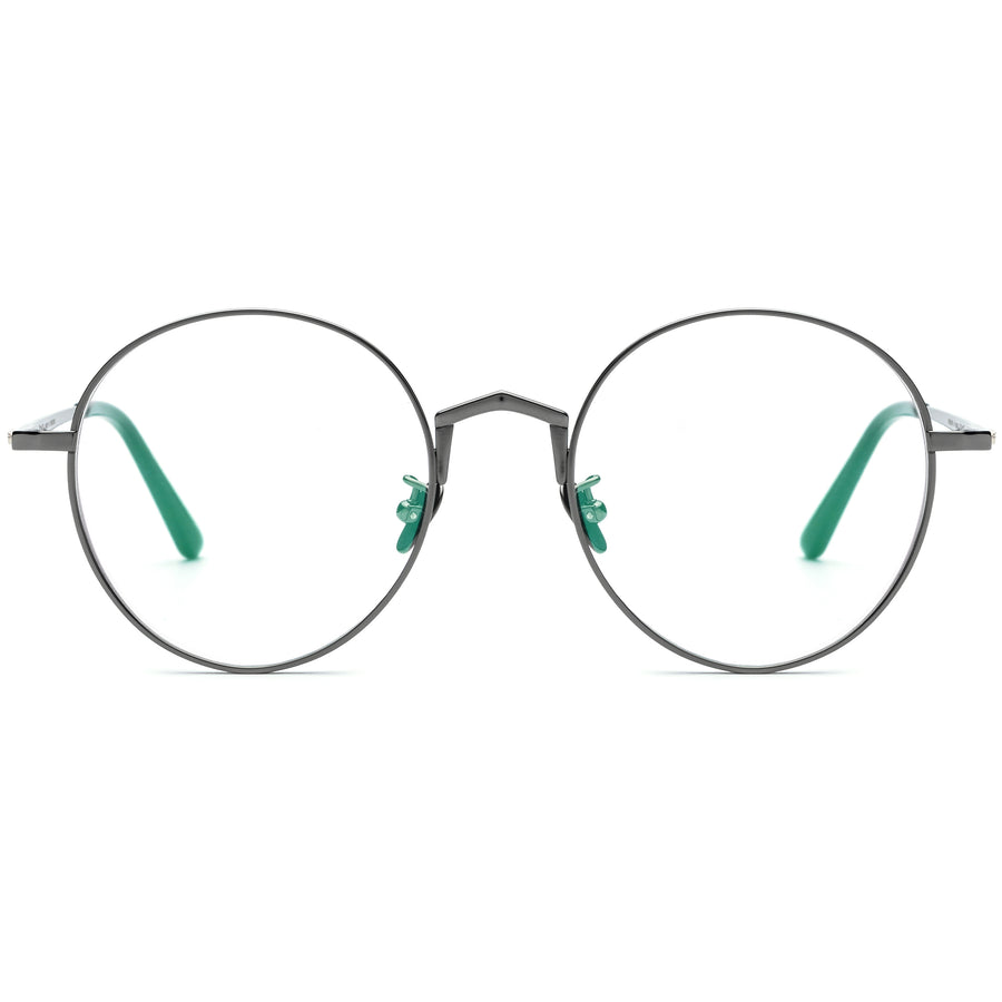 These full-frame round glasses are designed for both men and women, combining ultra-light pure titanium with exceptional flexibility and durability. The frame offers a refined, artistic look with a vintage-inspired round design, complemented by transparent, unique temple arms for a distinctive touch. The glossy finish enhances their visual appeal, while the flexible temple arms and skin-friendly, anti-slip acetate tips ensure a secure fit by reducing pressure on the nose bridge and ears. The ergonomic titanium nose pads offer all-day comfort and are suitable for everyday use.