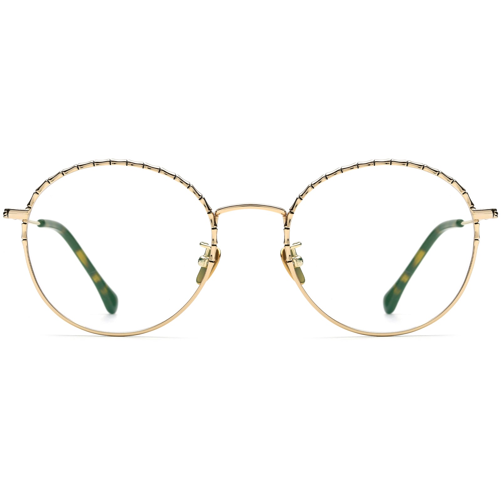 These unisex round glasses feature an ultra-light pure titanium frame that’s both comfortable and durable. The upper part of the front frame is designed with a unique bamboo joint pattern, offering an eye-catching, distinctive look. Adjustable, hypoallergenic pure titanium nose pads ensure a secure, irritation-free fit. The sturdy hinges and acetate temple tips provide long-lasting durability. Perfect for both daily wear and formal occasions, these glasses seamlessly combine style, design, and comfort for versatile use.