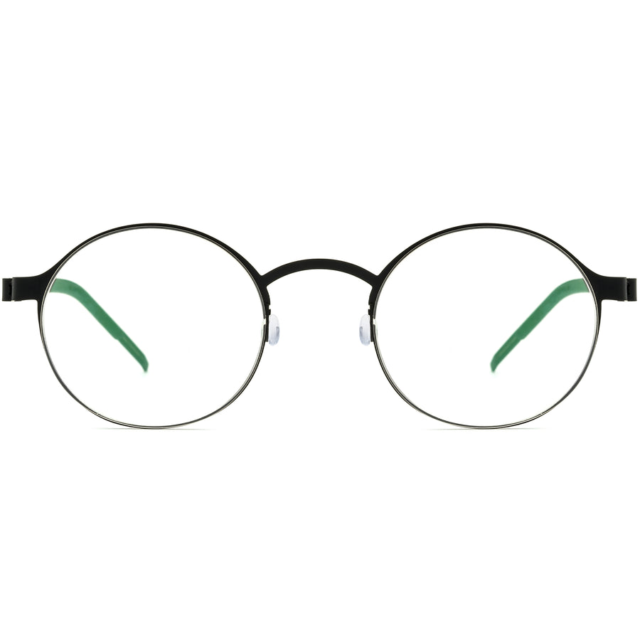 This medium-sized round frame is meticulously crafted from premium metal, offering a perfect combination of lightweight comfort and sturdy durability. The full-rim design enhances its classic retro style, making it a timeless choice for both men and women. Equipped with comfortable nose pads for a secure and pleasant fit, these glasses are ideal for everyday wear. The anti-slip temple tips ensure the glasses stay in place, providing added comfort and stability throughout the day.