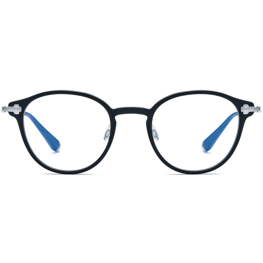 These unisex round glasses feature a mixed-material design, with a matte-finish acetate front rim for a modern, minimalist look. A sleek metal detail connects the temple arms to the frame, adding a subtle touch of sophistication. The silicone nose pads ensure a comfortable fit, while the lightweight construction makes them ideal for daily use. Perfectly complementing square and diamond face shapes, these glasses offer a unique design that balances style and comfort for a versatile, everyday accessory.