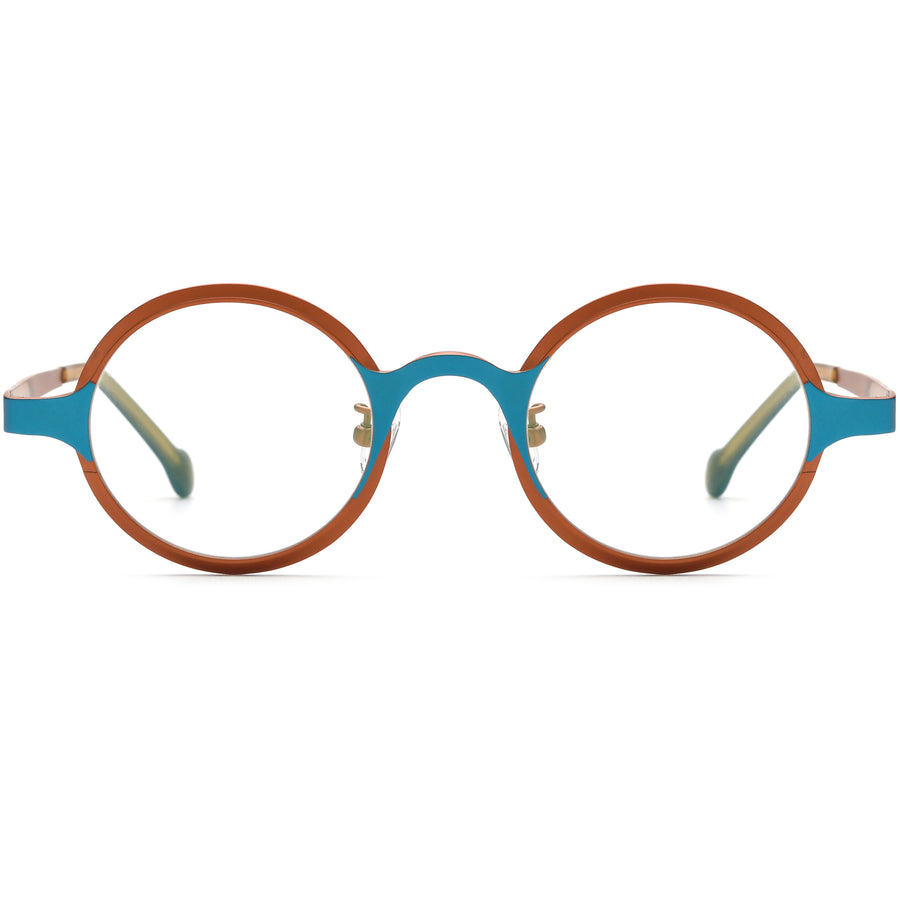 These full-rim round glasses offer versatile sophistication with a sleek dual-tone design, crafted from lightweight titanium for durability and ease. The lightweight construction, coupled with adjustable nose pads, ensures unbeatable comfort for all-day wear. Perfect for both men and women, these glasses are ideal for softening square and diamond face shapes, providing a flattering look. Available in timeless colorways of brown, black, and green, they are a stylish, everyday accessory that blends comfort and functionality effortlessly.