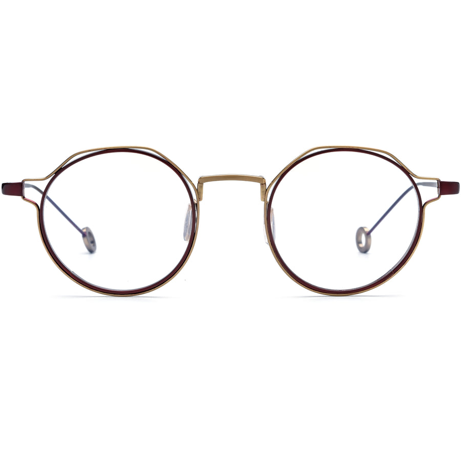 Experience the fusion of innovation and elegance with our dual-tone round eyeglasses. Expertly crafted from lightweight titanium, these frames showcase a unique two-layered rim in contrasting shapes and shades. The harmonious blend of colors offers a distinctive edge, while the durable titanium promises lasting wear. Perfect for those seeking a blend of modern sophistication and classic charm.