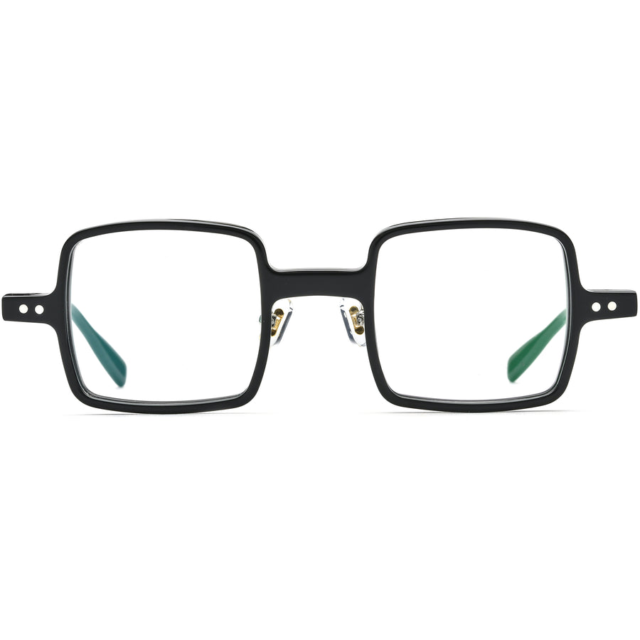 These bold square glasses feature a striking full acetate frame with refined rivet accents at the corners and temples, offering a blend of retro charm and modern style. The sturdy build ensures durability, while adjustable silicone nose pads provide a comfortable, secure fit for extended wear. Available in classic black, tortoiseshell, and frosted white, these glasses deliver timeless versatility with a contemporary twist, perfect for making a fashion-forward statement in everyday settings.