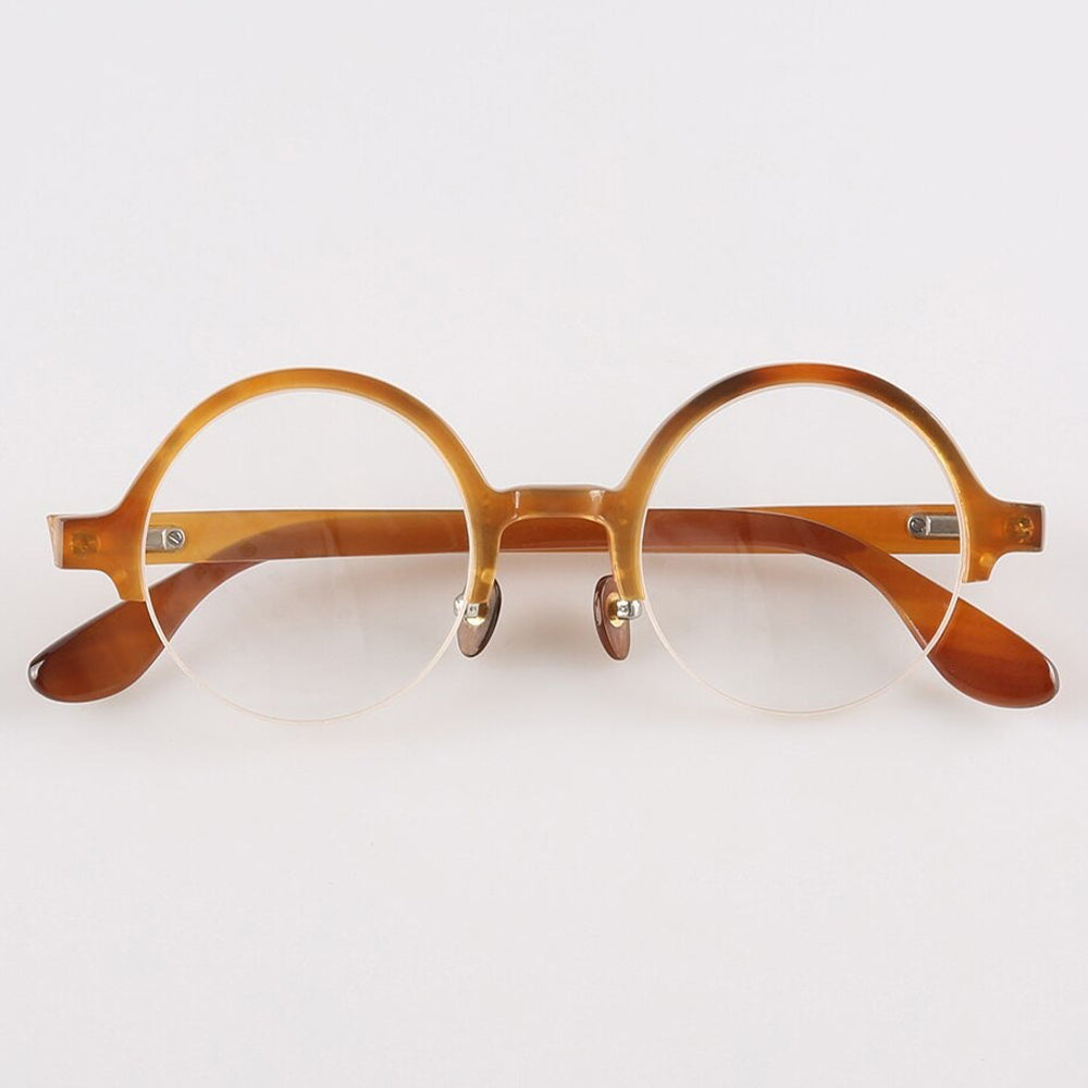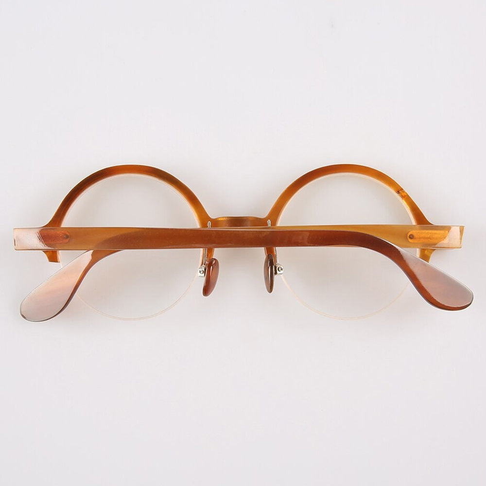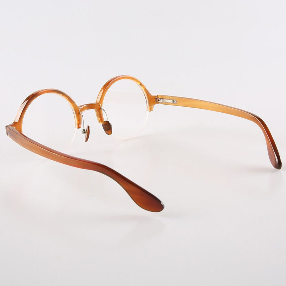 Channel timeless elegance with these vintage half-rim eyeglasses. Crafted from genuine buffalo horn, they boast petite round lenses, encapsulating the essence of eras gone by. Their understated design seamlessly blends the rich history of eyewear with the unmatched beauty of buffalo horn. Ideal for those with a penchant for retro style fused with natural sophistication.