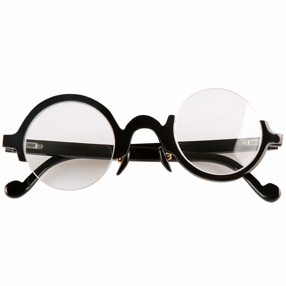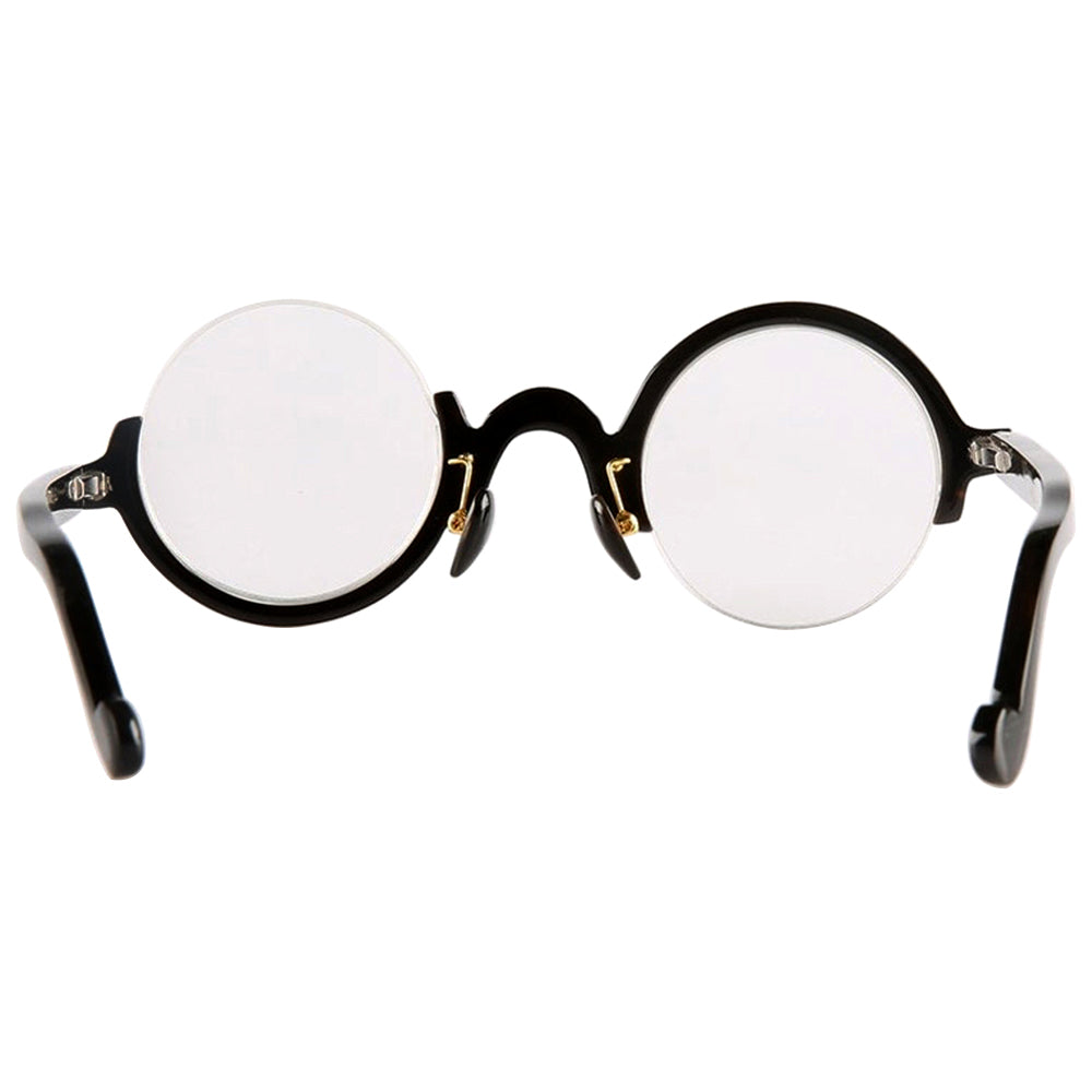 Dive into avant-garde style with these half-rim eyeglasses. Crafted from genuine buffalo horn, they feature petite round lenses. Their asymmetrical design stands out with one side resembling a classic half rim, while the other intriguingly inverts this look, offering an upside-down appeal. These glasses aren't just eyewear; they're a conversation piece for those bold enough to defy the ordinary.