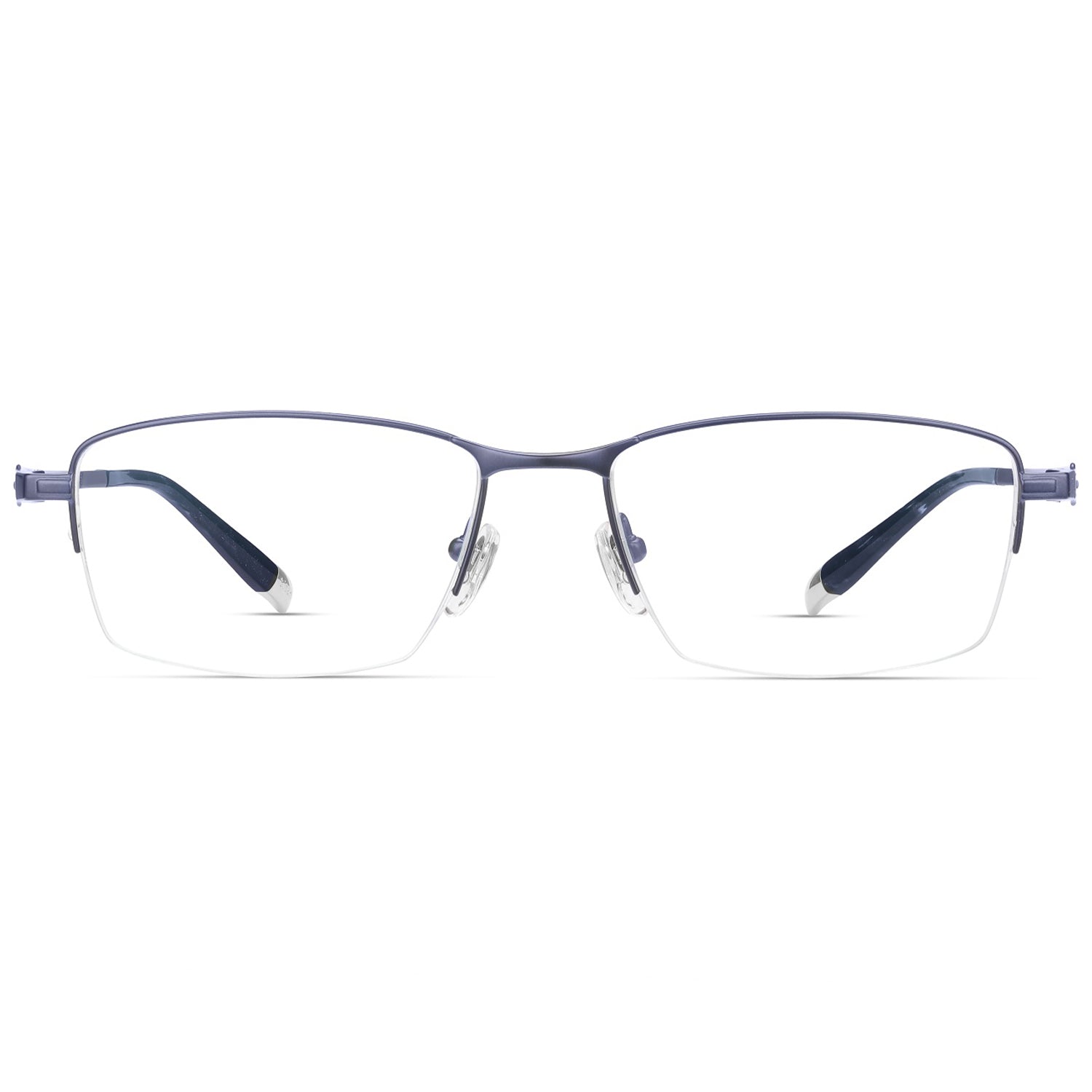 Elevate your vision with our lightweight, half-rim rectangular eyeglasses, designed for the modern individual. Crafted with flexible β titanium, they offer durability without compromising on style. Acetate temple tips provide an elegant finish and added comfort. With adjustable nose pads, they promise a custom-fit, ensuring all-day wearability. Choose from a sophisticated color range including cool blue, opulent gold, classic black, contemporary gray, and rich brown to perfectly complement your personal style. Experience clarity in style.