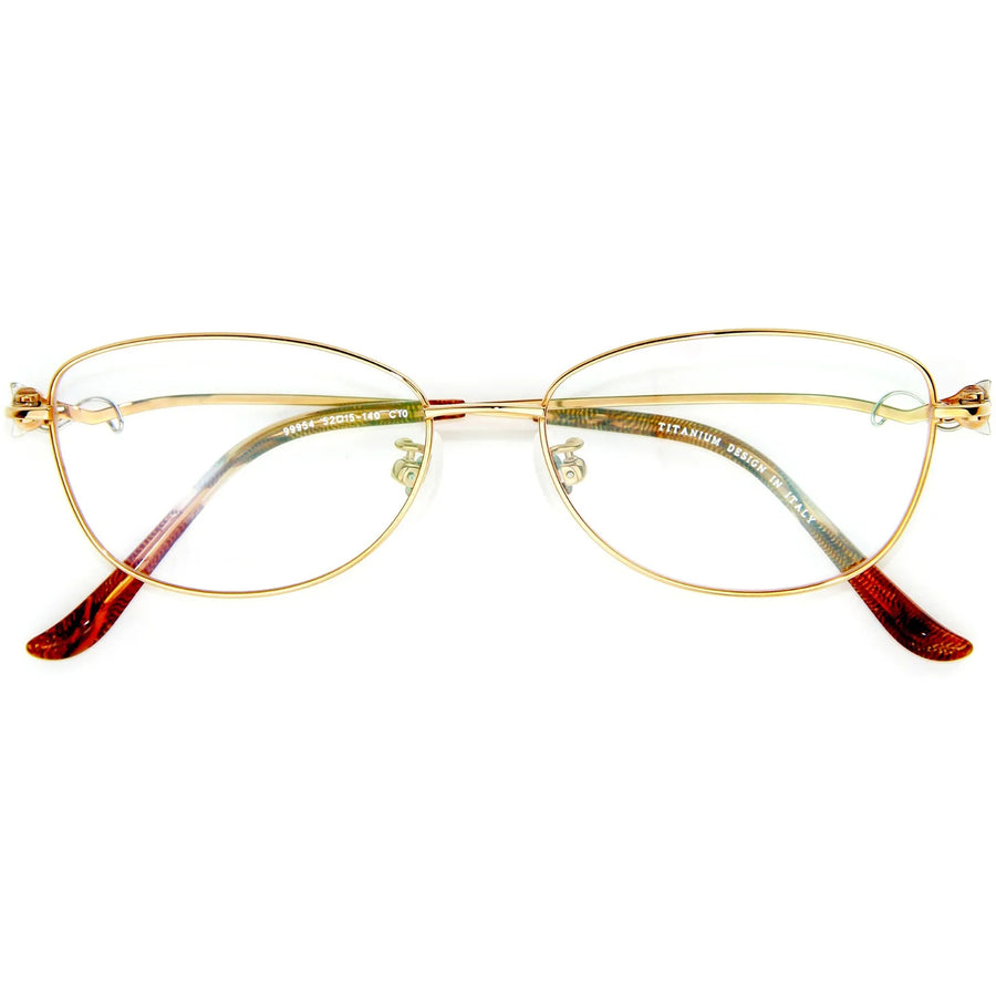 Unveil a touch of vintage glam with these women's full-rim cat-eye eyeglasses, masterfully crafted from titanium. Radiating in shades of pink, silver, and gold, their metallic allure is paired with adjustable jade nose pads for the ultimate comfort. A chic fox ornament, adorned with Austrian rhinestones, enhances the temple, leading to smooth acetate tips. An embodiment of luxury and retro sophistication.