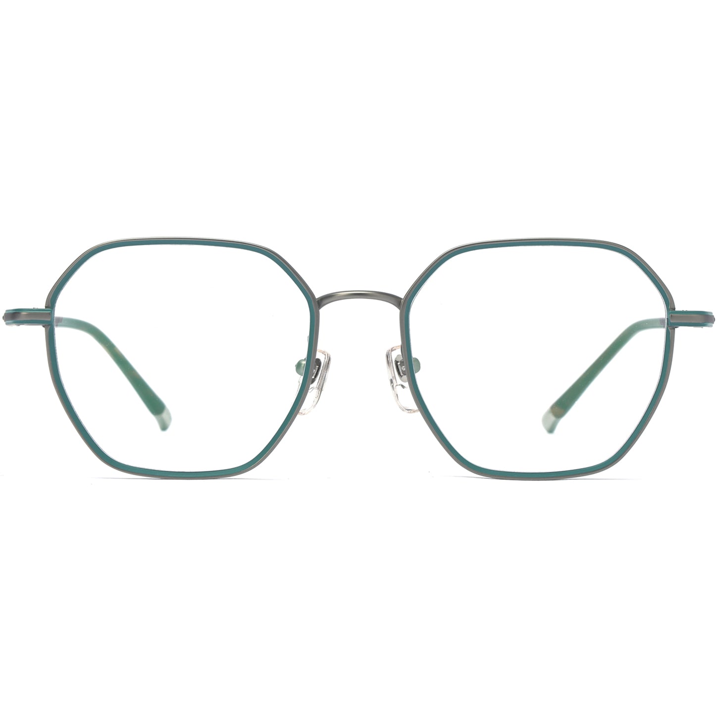 Discover contemporary sophistication with these lightweight eyeglasses. Crafted into a striking hexagonal silhouette, they seamlessly blend the refined elegance of an acetate rim, reinforced with the strength of titanium. Their dual-tone design adds a touch of modern flair, while the flexible β-titanium ensures durability and optimal comfort. Adjustable nose pads promise a personalized fit, and the design is elegantly finished with acetate temple tips adorned by a chic metal ornament. An embodiment of fashion-forward refinement for those who value style and quality.