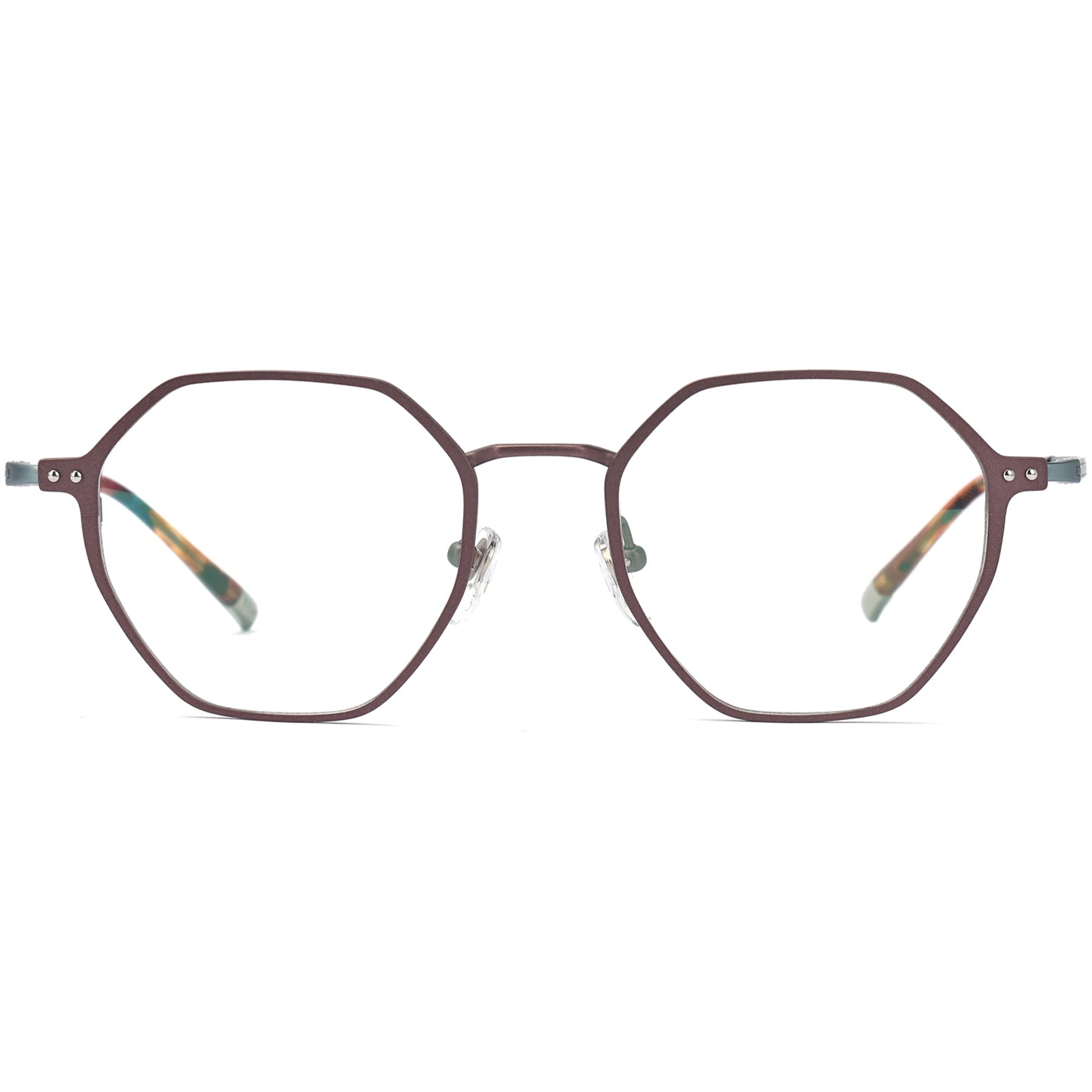 Introducing our stylish and lightweight octagon-shaped eyeglasses, designed to elevate your look with a touch of elegance. The full-rim frame features two silver dots on each side of the front frame, adding a subtle yet sophisticated detail. Crafted with flexible β titanium, these glasses offer both durability and comfort for everyday wear. The adjustable nose pads ensure a personalized fit, enhancing the overall experience. The acetate temple tip, complemented by a chic metal accent, completes the design with finesse. Embrace the perfect blend of modern aesthetics and functionality with these trendy and versatile eyeglasses, ideal for any occasion.