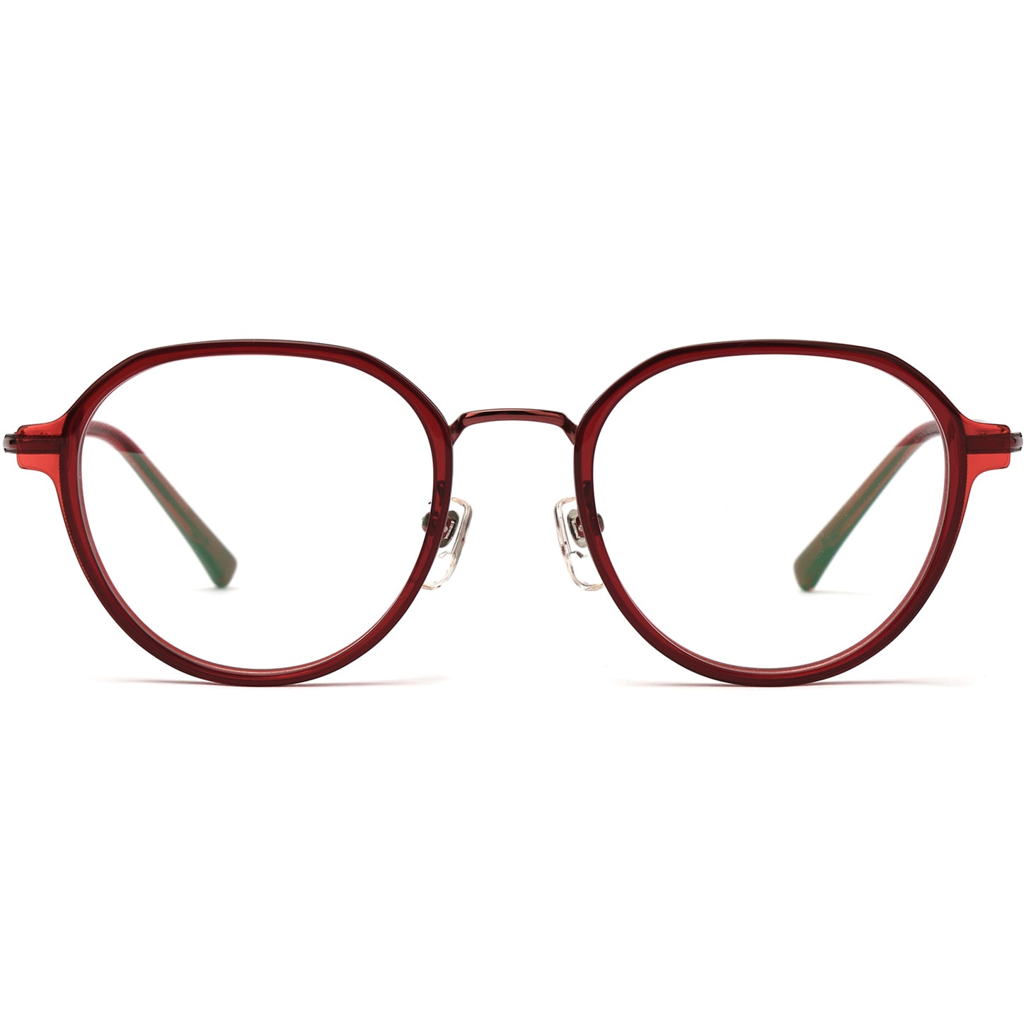 Introducing our lightweight and durable eyeglasses, expertly crafted with an acetate frame reinforced by titanium for enhanced strength and style. The full-rim round design with a flat top exudes a modern and versatile look, making a bold statement. The adjustable nose pads ensure a comfortable and personalized fit, catering to various face shapes. Embrace the perfect accessory that offers both fashion and functionality. Elevate your eyewear collection with these reliable and stylish round eyeglasses, designed to provide ultimate comfort and durability. Enjoy the confidence and sophistication these glasses bring to your everyday look.