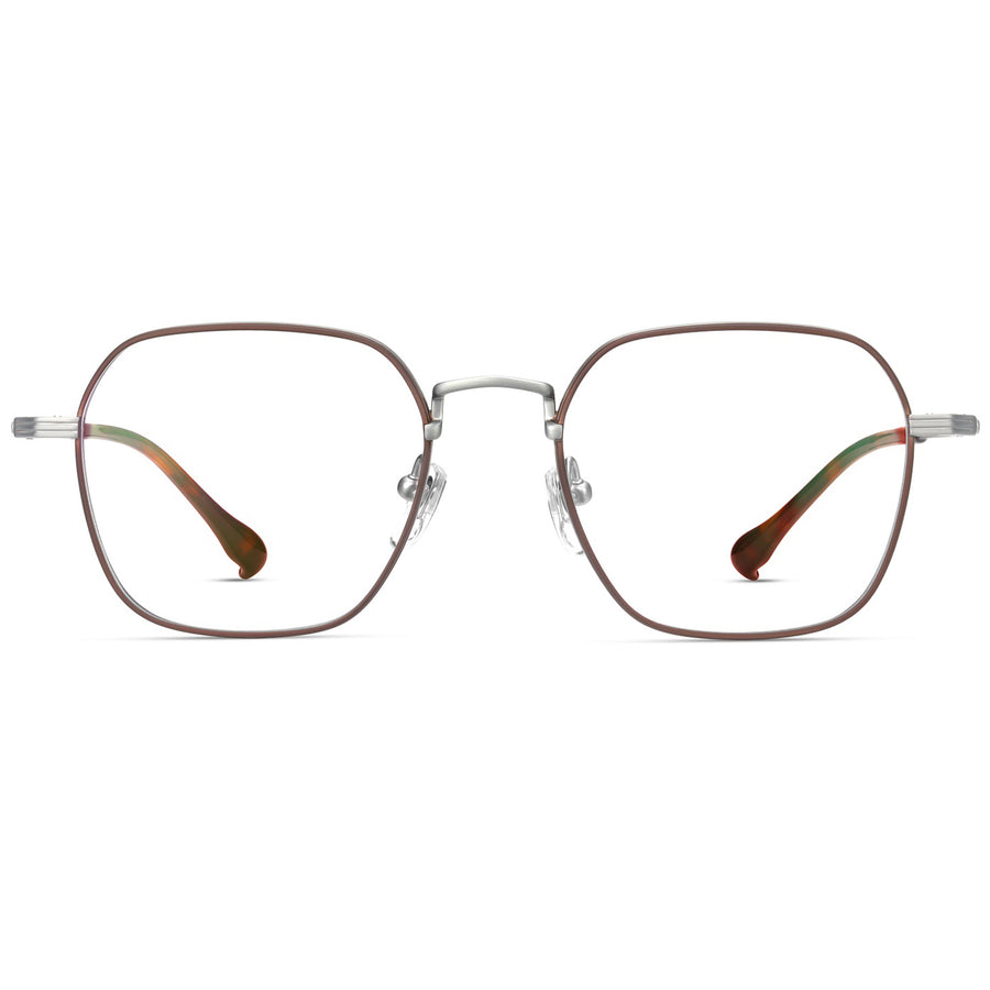 Discover a fusion of style and functionality with our square eyeglasses frame. Crafted with precision, the flexible β titanium temples are adorned with subtle carvings and small accents, adding a touch of sophistication to the design. The two-tone aesthetic offers a contemporary edge, making these frames both versatile and statement-making. Soft acetate temple tips provide comfort during extended wear, while adjustable nose pads ensure a tailored fit. Elevate your look with these finely detailed, elegantly crafted frames.