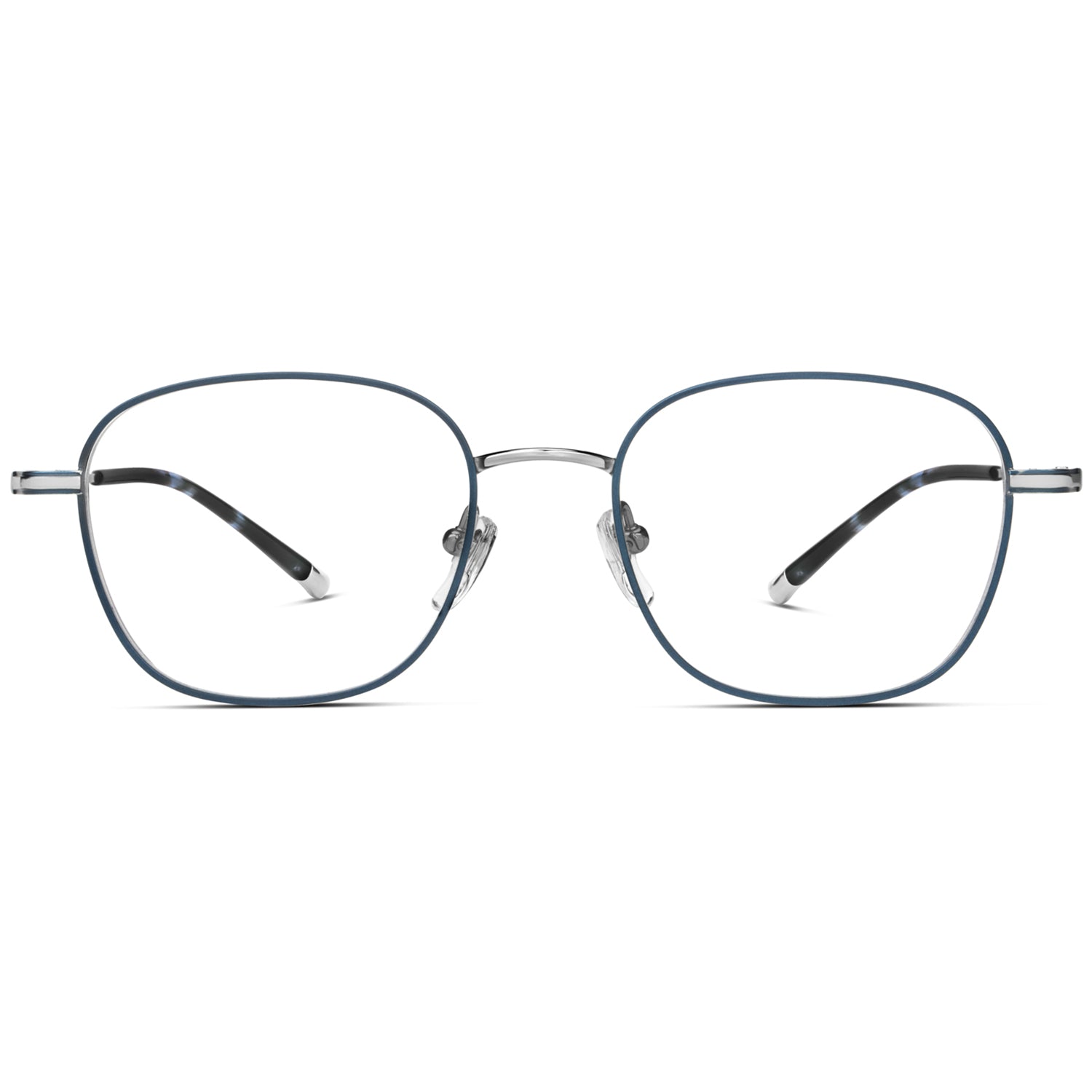 Elevate your vision with these sleek eyeglasses, masterfully crafted with a light-weight full-rim square design. Their flexible β titanium temples guarantee durability, seamlessly complemented by soft acetate temple tips. The rims are intricately adorned with a distinctive square pattern, creating a mesmerizing play of light. These glasses feature a contemporary dual-tone finish, available in shades of blue, green, black, and brown. Adjustable nose pads ensure a comfortable fit, making them an impeccable blend of style and comfort.