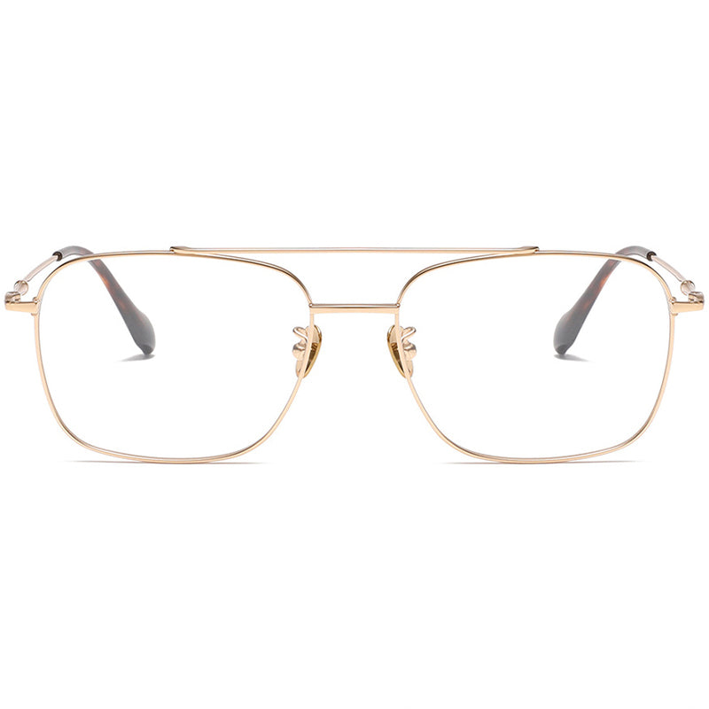 Refined and versatile, these large titanium aviator eyeglasses feature a slim metal build and clean double-bar detail for a modern vintage look. The full-rim lightweight wide frame sits comfortably with adjustable nose pads and smooth temple tips for secure all-day wear. Precision hinges add durability without bulk, making them ideal for work, travel, and daily use. A flattering choice for men with big faces—perfect for prescription lenses or blue-light filtering.