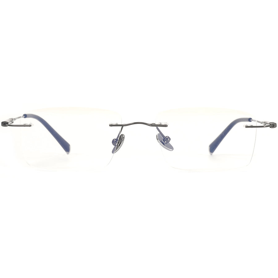 Clean, lightweight, and built for men with bigger faces, this rimless rectangle frame keeps your look sharp without the bulk. Premium titanium construction delivers all-day comfort with a barely-there feel, while adjustable titanium nose pads help fine-tune fit and stability. The minimalist design opens up your field of view and keeps the profile sleek for daily wear—office, driving, and everything in between. A modern classic for men who want extended fit and effortless simplicity.