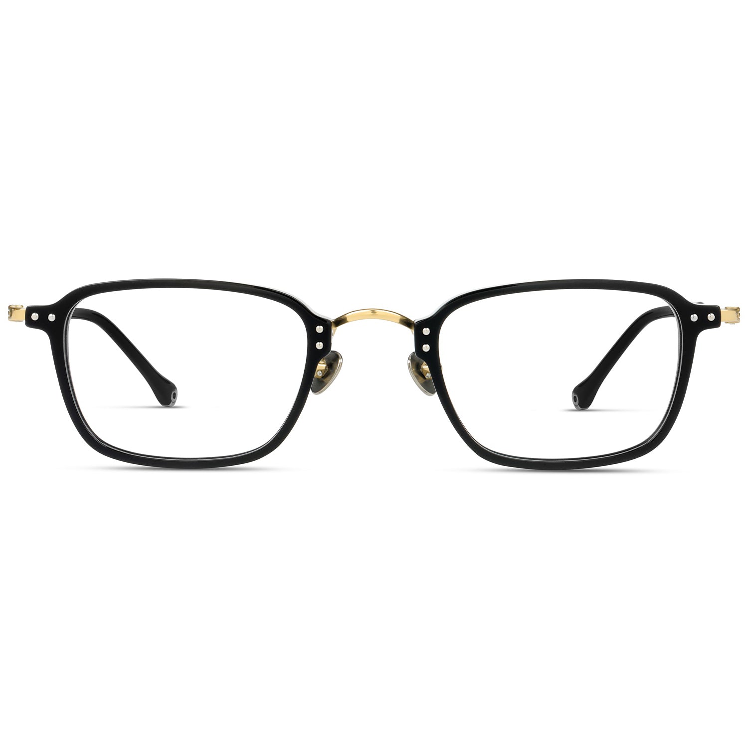 Discover our premium glasses frame, the epitome of style and comfort. The front part is meticulously crafted from high-quality acetate, offering both durability and sophistication, while the flexible β titanium temple ensures a secure and comfortable fit. With an adjustable nose pad, these rectangular frames can be tailored to your preferences for all-day wear. The exquisite design features eight metallic dots embedded on the surface of the acetate, adding a touch of elegance to your look. Available in a diverse range of chic colors, including black gold, blue, black, tortoiseshell A, tortoiseshell B, gray, transparent silver, transparent brown, and green, these lightweight frames allow you to express your unique style effortlessly. Elevate your fashion statement with these exceptional glasses frames, making a bold statement wherever you go.