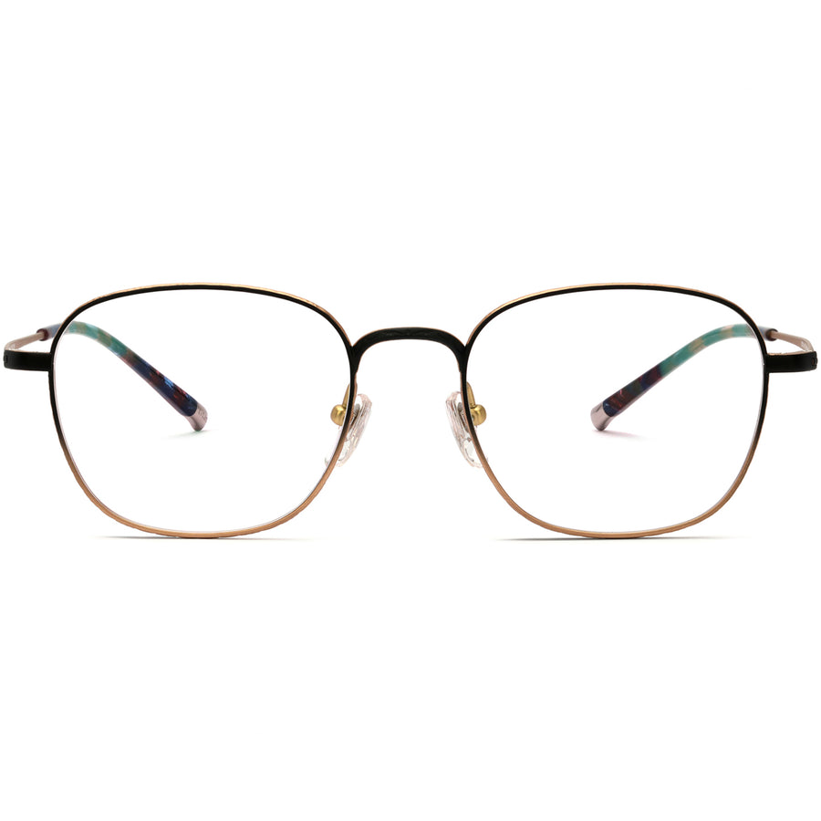Presenting our Two-Tone Square Eyeglasses, an expression of artistry and modern sophistication. These lightweight, full-rim frames are meticulously crafted from flexible β titanium, featuring retro artistic carvings and a unique two-tone design on the frame's interior and exterior. Comfort is prioritized with acetate temple tips and adjustable nose pads. Available in a variety of colors, including gradient black, classic black, gradient navy blue, rose gold, and silver, these glasses serve as more than just a vision aid - they're a stylish accessory for every fashion-forward individual.