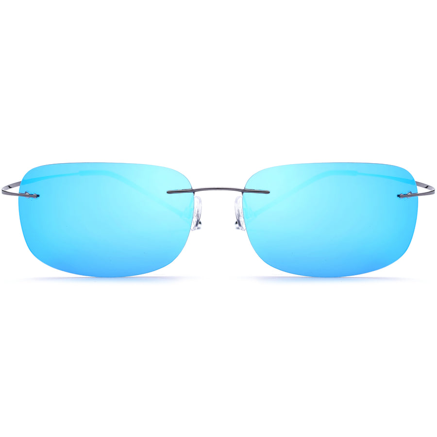 These rimless blue mirrored sunglasses combine ultralight comfort with cutting-edge style. Featuring rectangular lenses and sleek titanium alloy temples, they deliver a minimalist yet modern look perfect for daily wear or travel. The mirrored blue tint reduces glare while enhancing visual clarity, making them ideal for sunny days outdoors. Adjustable silicone nose pads provide a secure fit, while the featherweight frame ensures all-day comfort. Designed for both men and women, these sunglasses elevate any outfit with effortless sophistication.