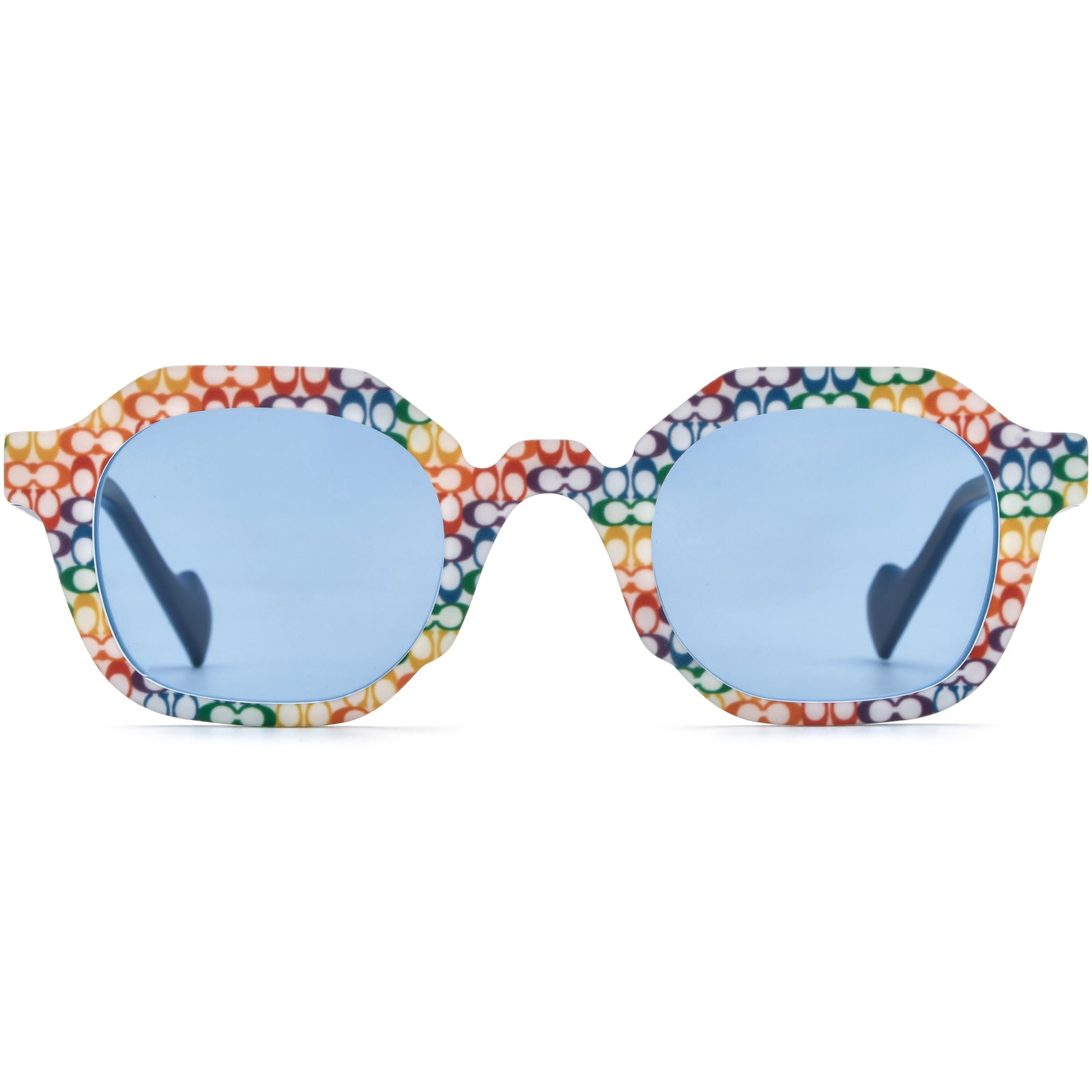 Express your bold personality with these stunning geometric multicolor sunglasses, featuring a unique acetate design and a full-rimmed shape. The polarized lenses provide excellent protection, blocking 100% UVA/UVB/UV400 rays while reducing glare for ultimate comfort and clarity. The vibrant, rainbow-inspired pattern ensures you stand out from the crowd. Ideal for casual outings or a statement fashion look, these sunglasses combine superior quality with a touch of playful sophistication. Perfect for any season and any occasion.