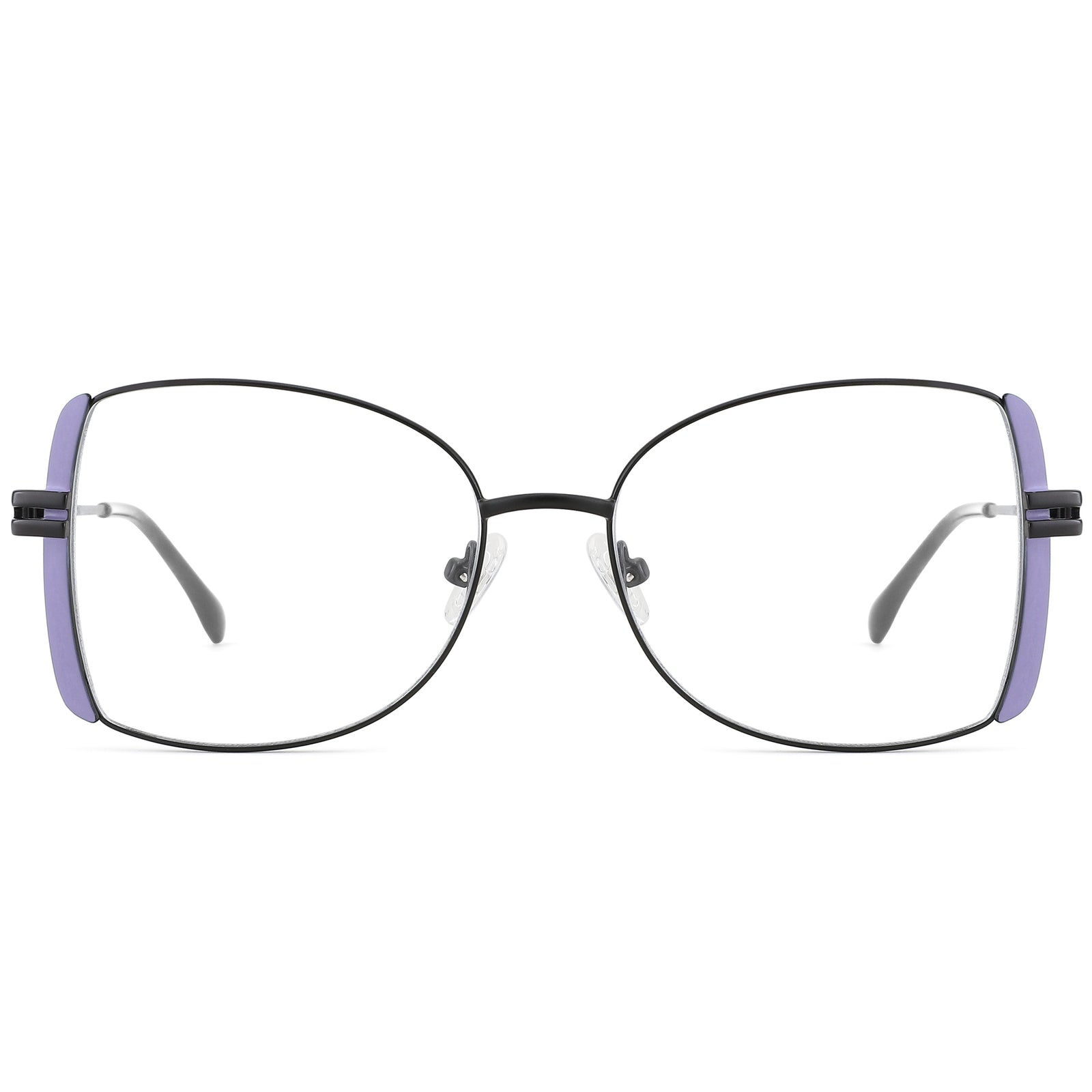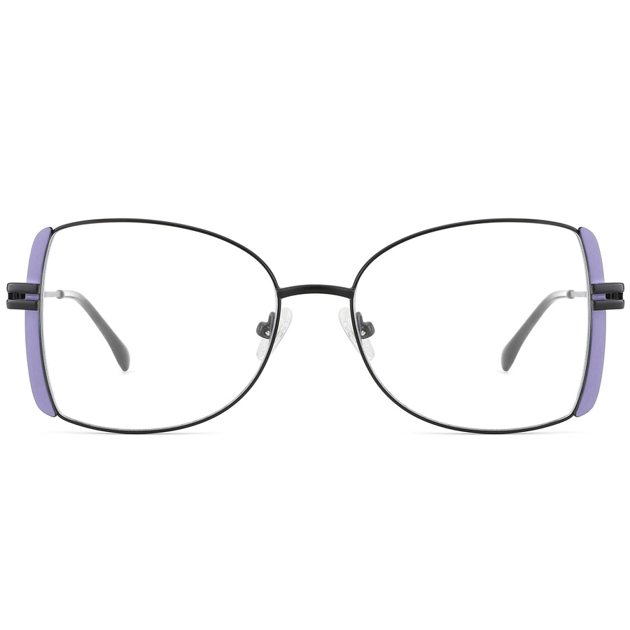 Embrace elegance with our sophisticated geometric frame, meticulously crafted from premium metal. It features a bold lens shape and bright color accents at the front rim. These full-rim glasses exude allure, featuring adjustable nose pads and spring hinges for maximum comfort and a well-balanced fit. Perfect for everyday wear, they are particularly suited for round face shapes, offering a refined and stylish appeal.